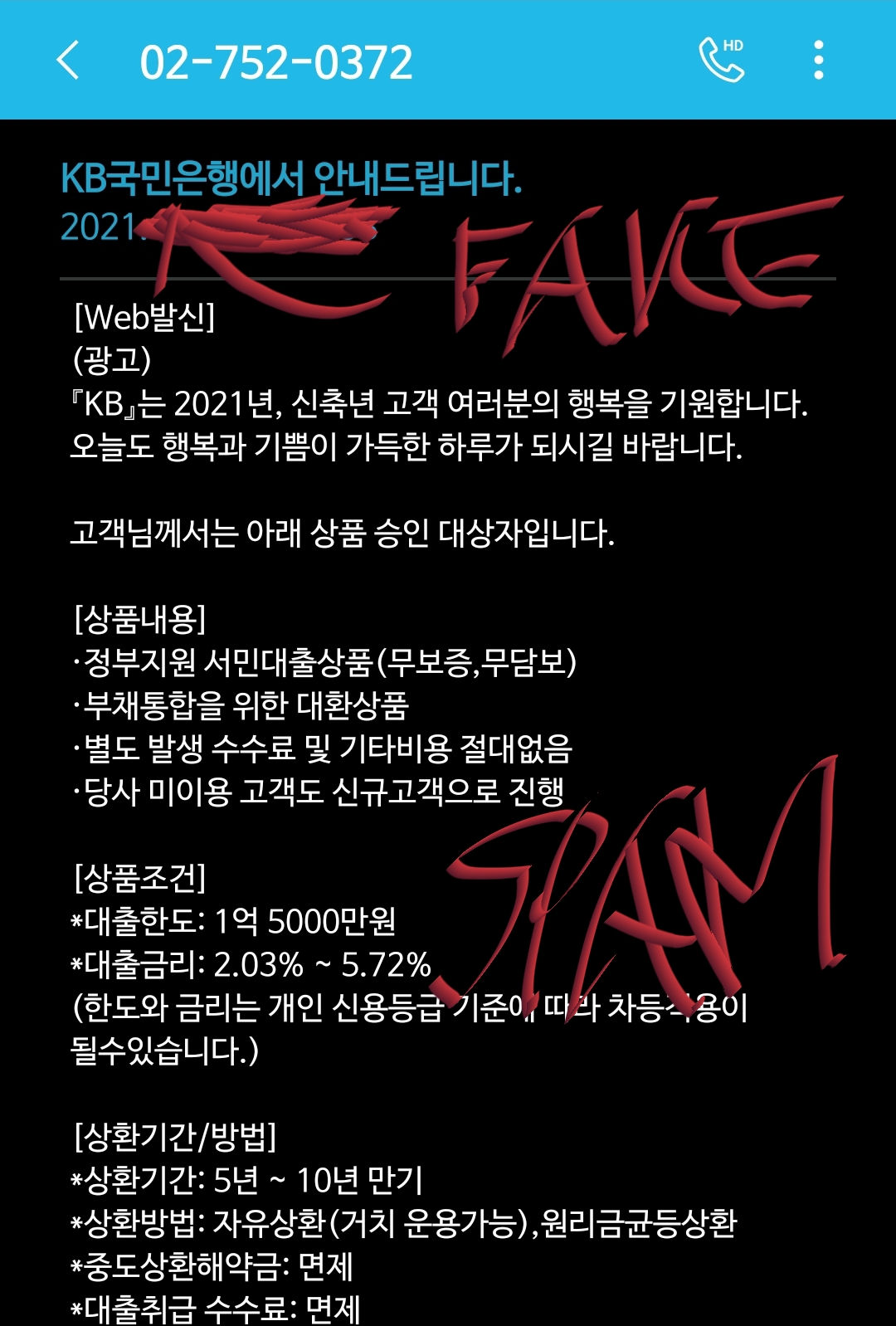 | KB금융/국민은행/KB국민은행사칭 대출권유 사기문자 (0) | 2020.12.10 |