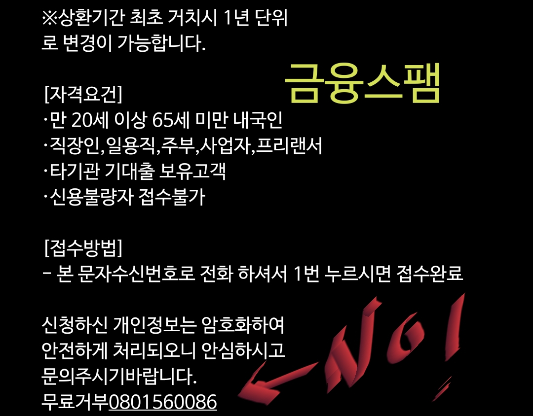 메시지에 포함된 전화번호로는 절대 회신하지 말고, 차단번호에 등록하세요.