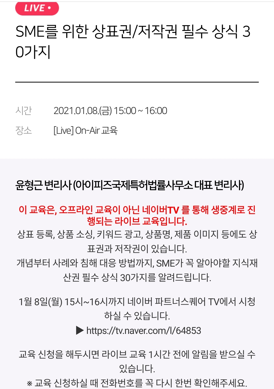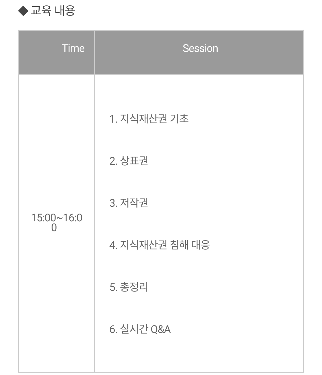 오늘 오후 3시~4시는 지적재산권 기초 강좌.