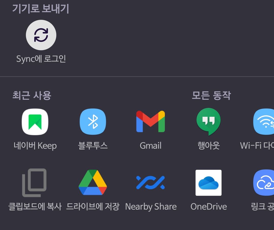 공유기능에서 "클립보드에 복사"를 고르고 메모장앱에 붙여넣기해보면 링크 목록이다.