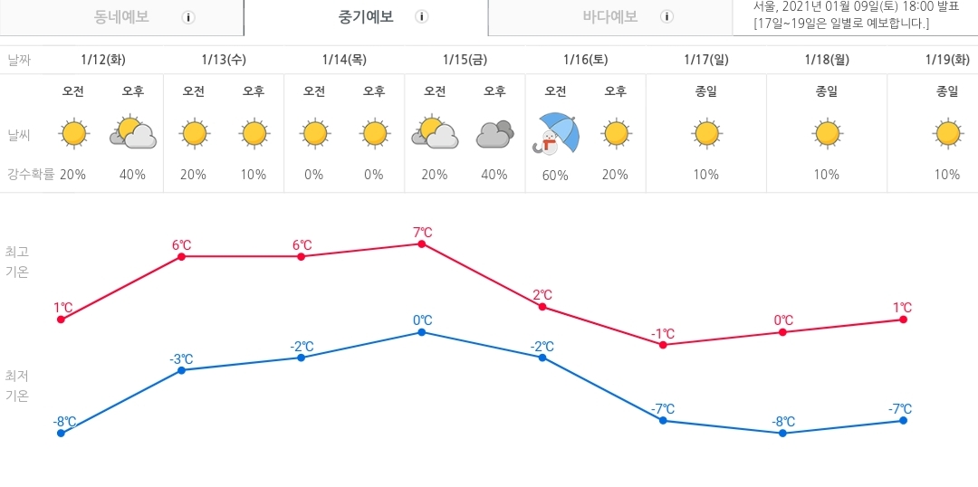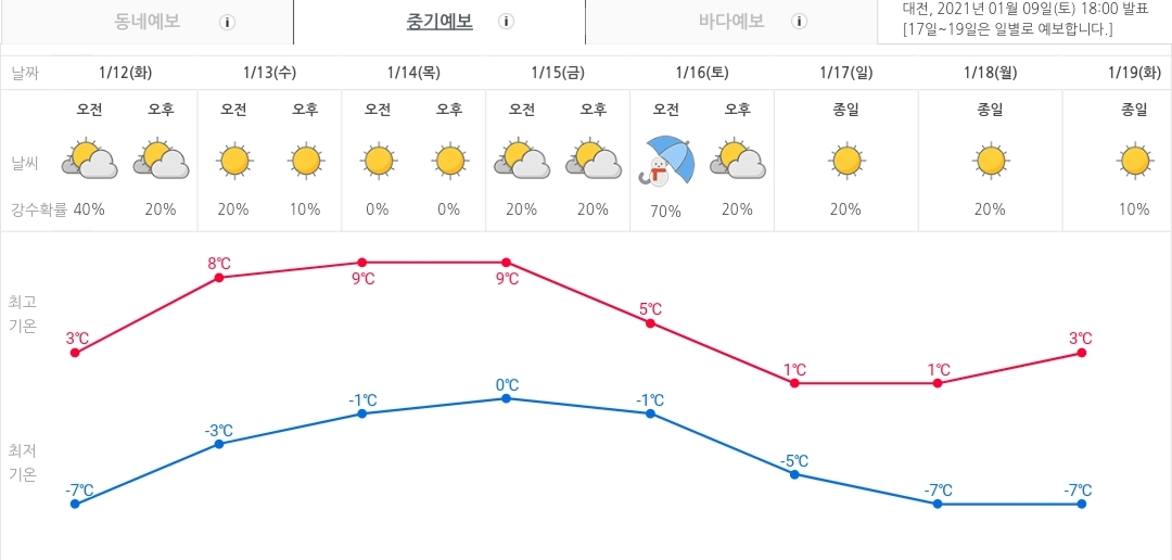 내주 일기예보. 서울과 대전