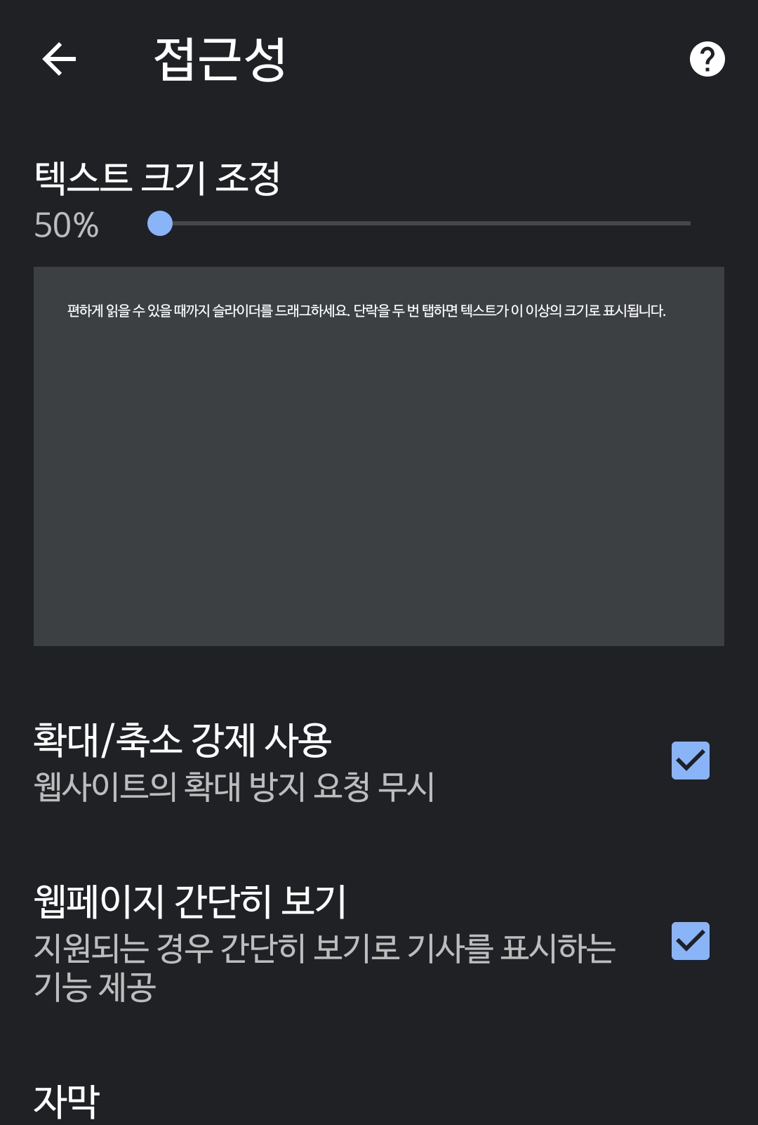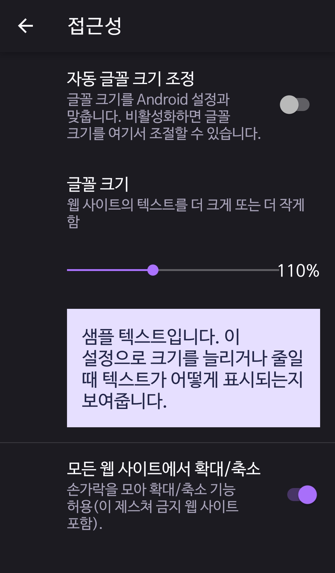 모바일은 이런 설정이 사이트별로 적용되면 더 편할 텐데 아직 더딘 듯. 그리고 사이트별로 적용한 환경을 일목요연하게 보고 편집하는 기능도 아직 없고..