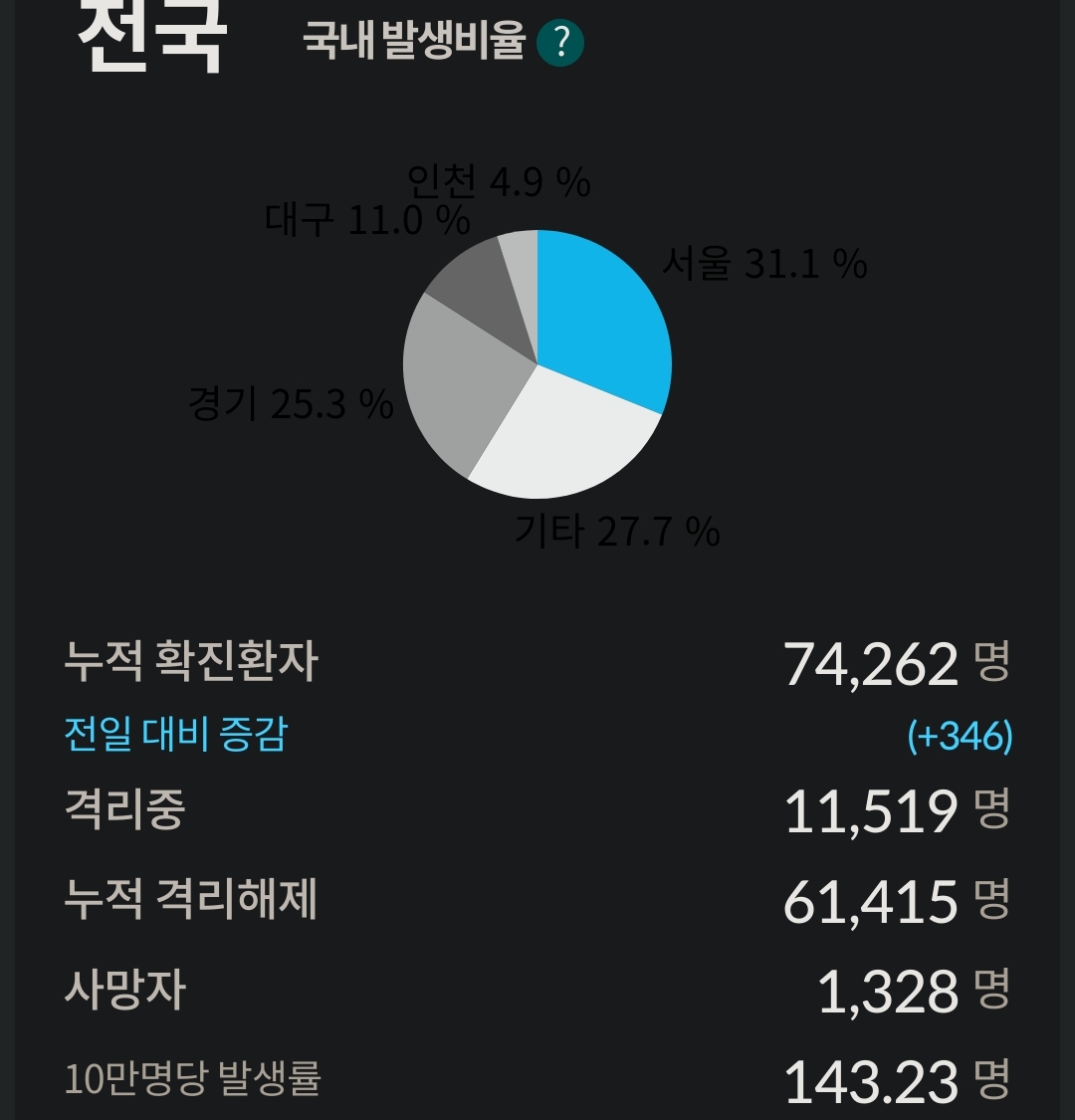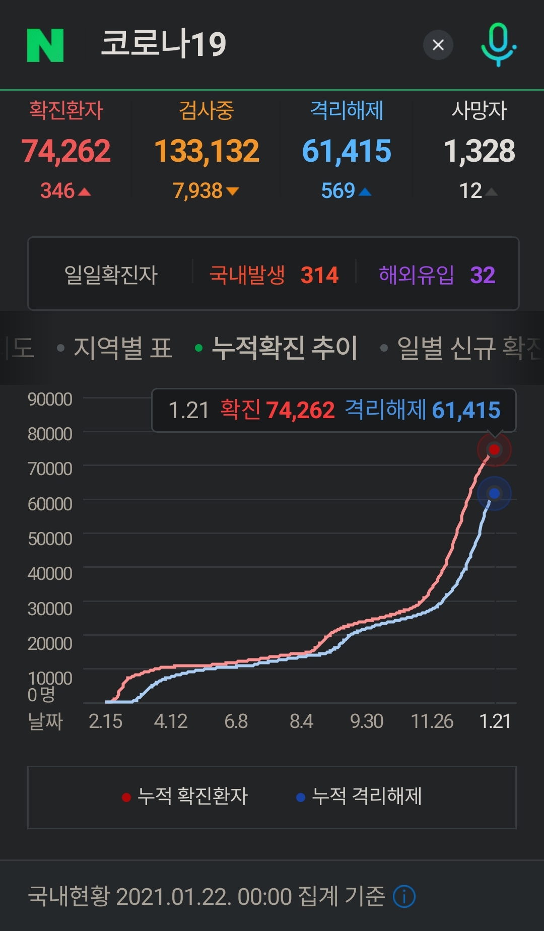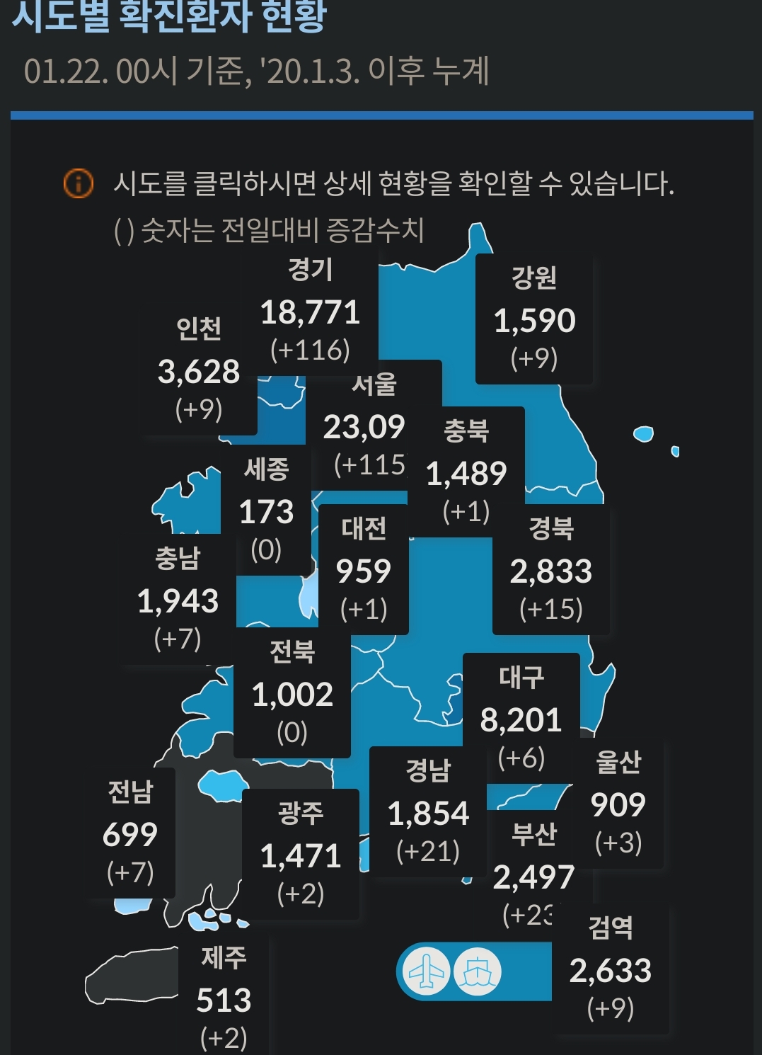 코로나19 집계 (2021.1.22 0:00 기준) 본문