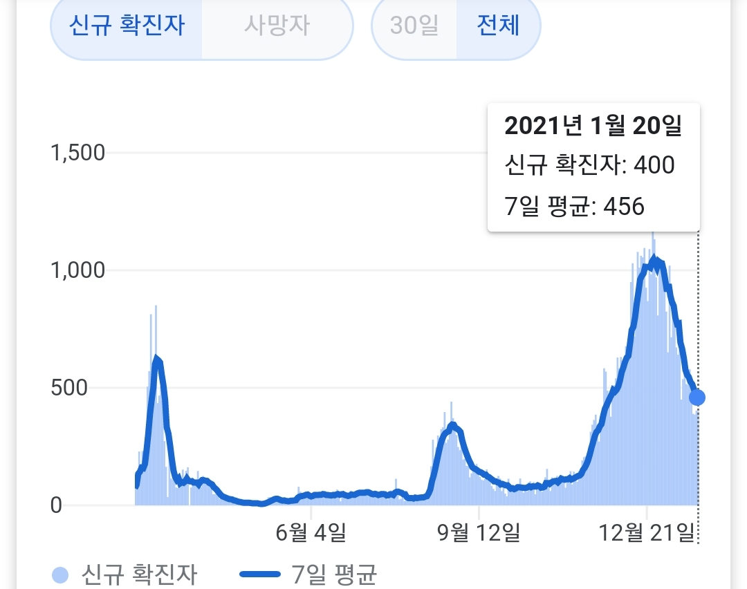 | 코로나19 집계(2021.1.21 0:00 기준) (0) | 2021.01.21 |