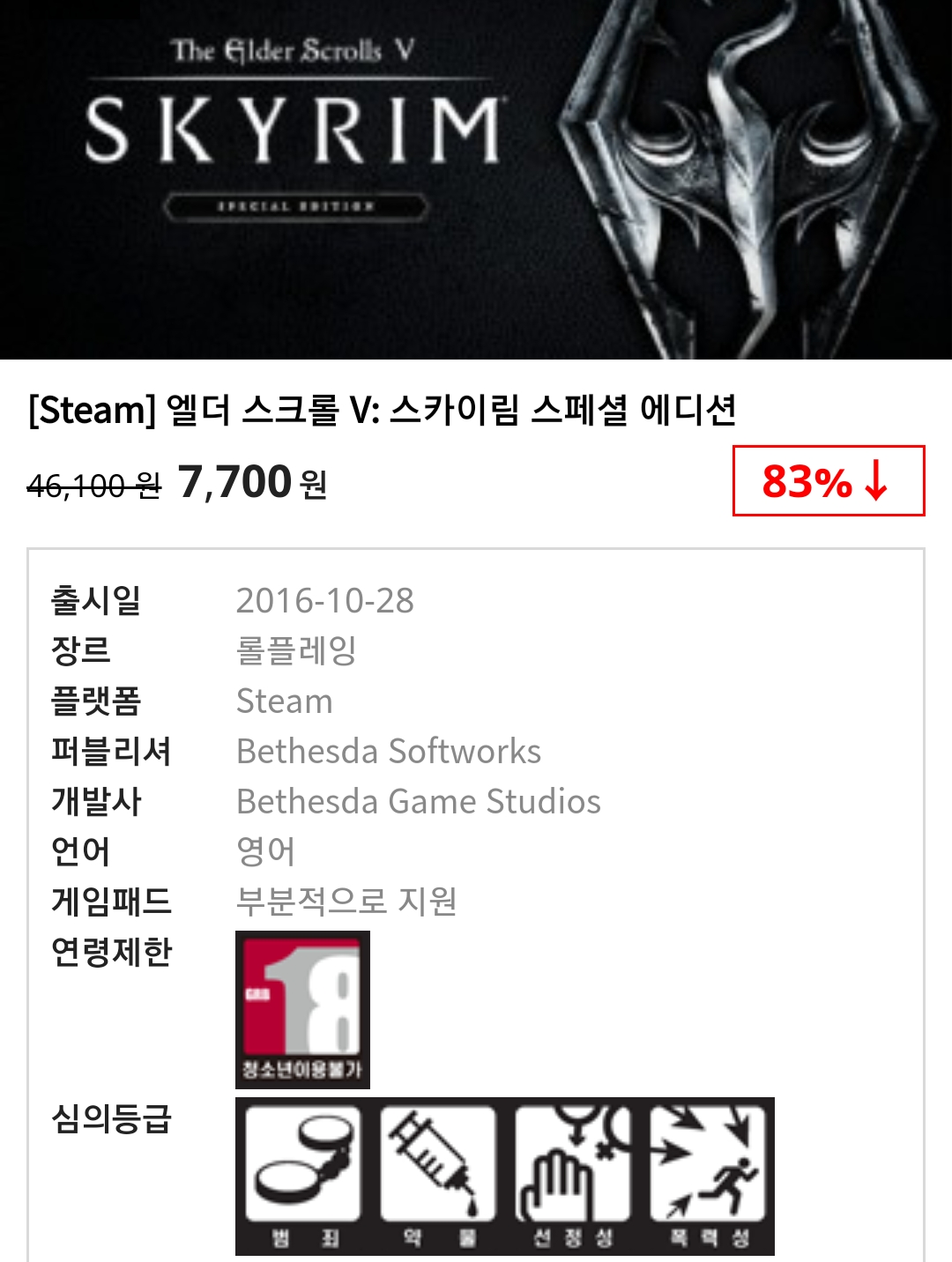 (다이렉트게임즈 세일) 엘더 스크롤 V: 스카이림 스페셜 에디션 (7700원) 본문