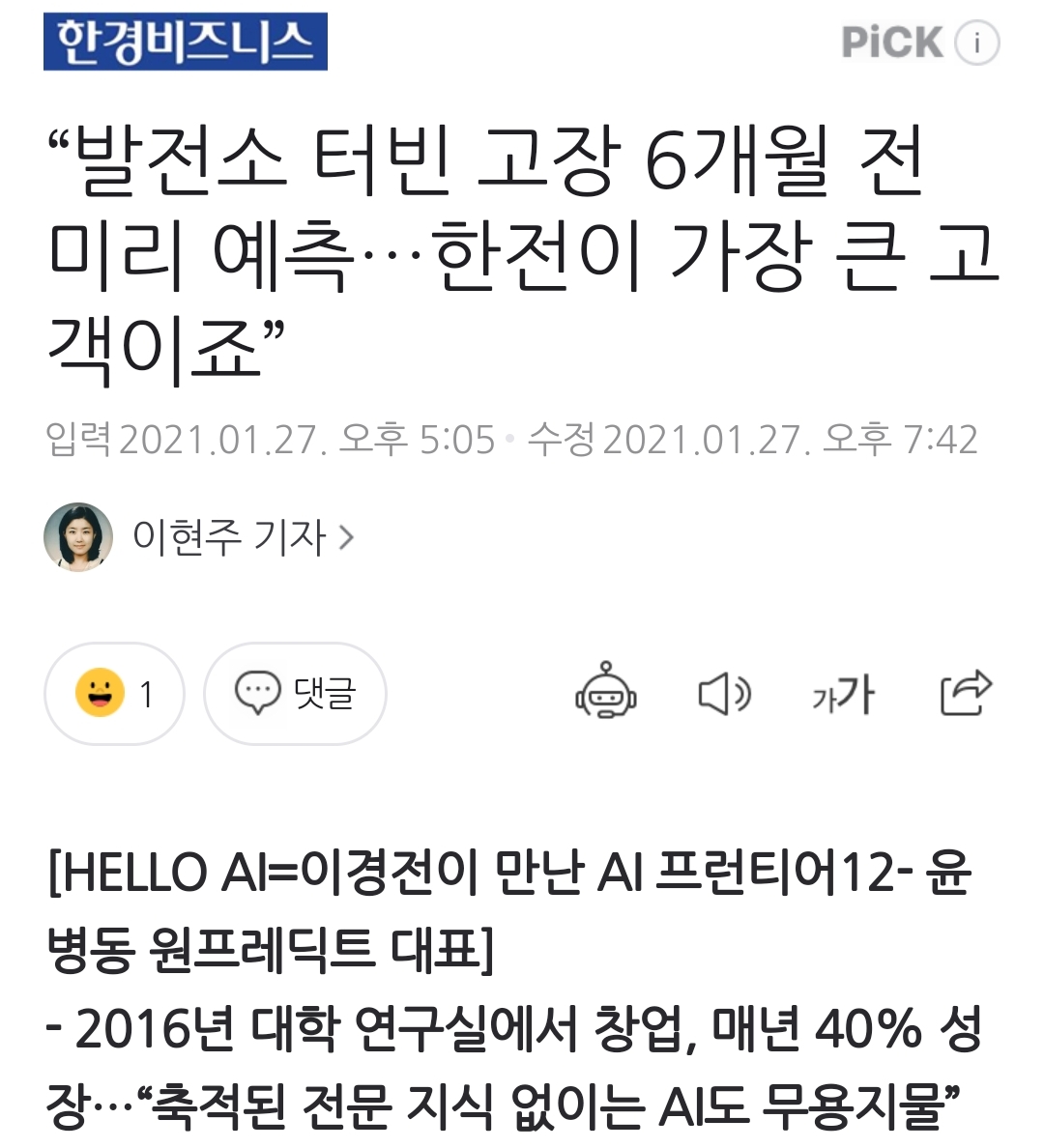 “발전소 터빈 고장 6개월 전 미리 예측…한전이 가장 큰 고객이죠”