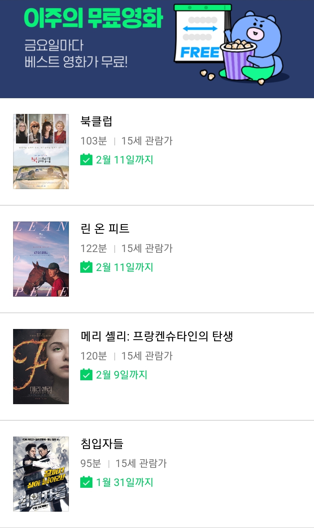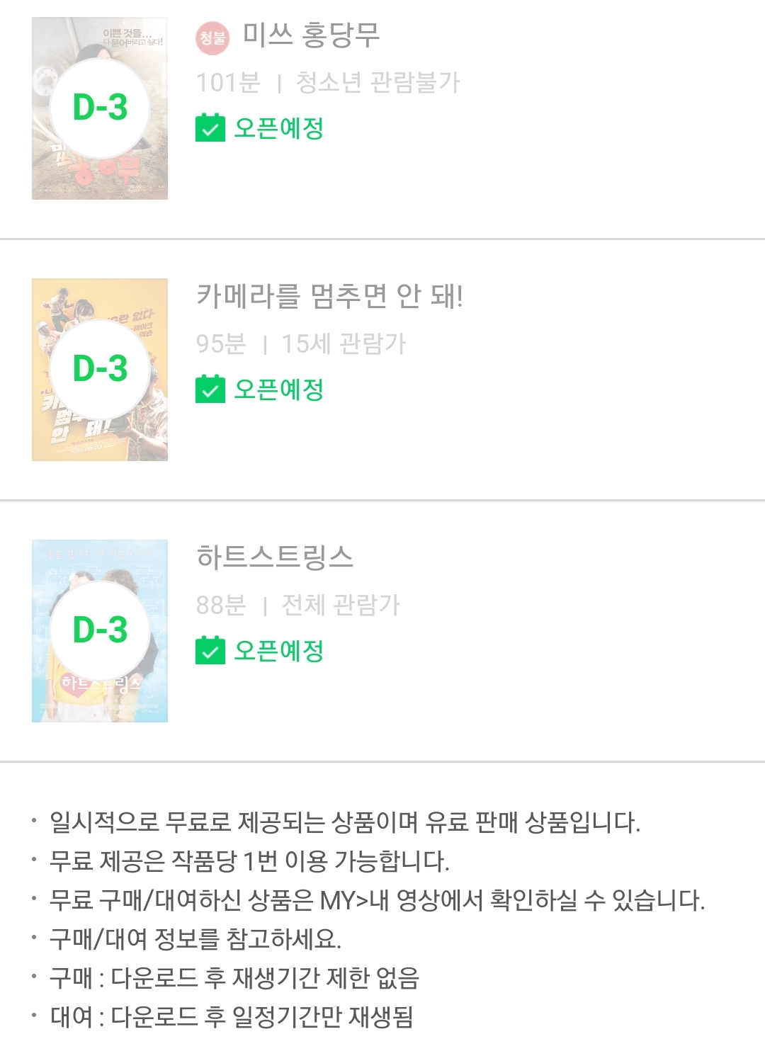 무료대여영화는 서비스기간 중 볼 때 무료대여하면 만 2일 정도던가, 온라인 스트리밍이나 DRM걸린 파일을 받아 시청할 수 있습니다.