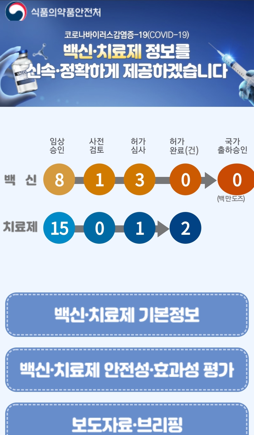 식품의약품안전처 백신치료제페이지