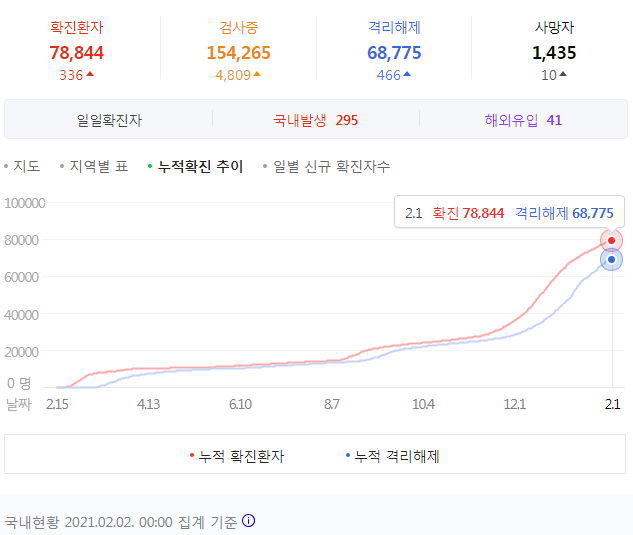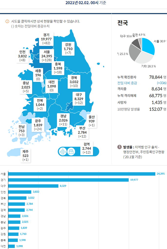 코로나19 집계(2021.2.2 0:00기준) 본문