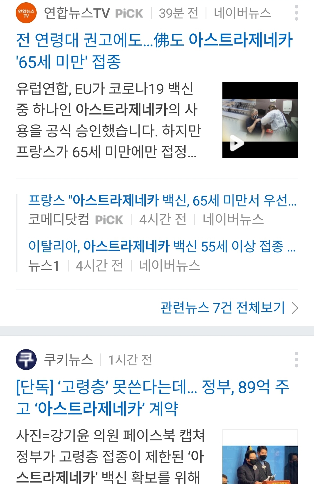 다만, 이전에 언급된 바와 같이, 효과가 없다고 증명된 것은 아니고, 아주 우수하지는 않아도 중년층까지는 효과가 증명됐기에, 짐작으로는 고령층에게도 마찬가지로 효과가 있겠거니한다는 거(딱히 크게 틀릴 것 같지도 않고요). 다만 평소 지켜오던 매뉴얼대로면 아닌 모양이라 리스크를 지고 융통성을 발휘해야 하기 때문에 그런다는 건데.. 프랑스든 이탈리아든 65세나 55세제한건 그 나라들은, 우리나라나 영국같은 다른 나라에서 몸으로 검증해주거나 아스트라제네카에서 추가 자료를 제출하면 그때 제한을 풀겠다는 이야기.