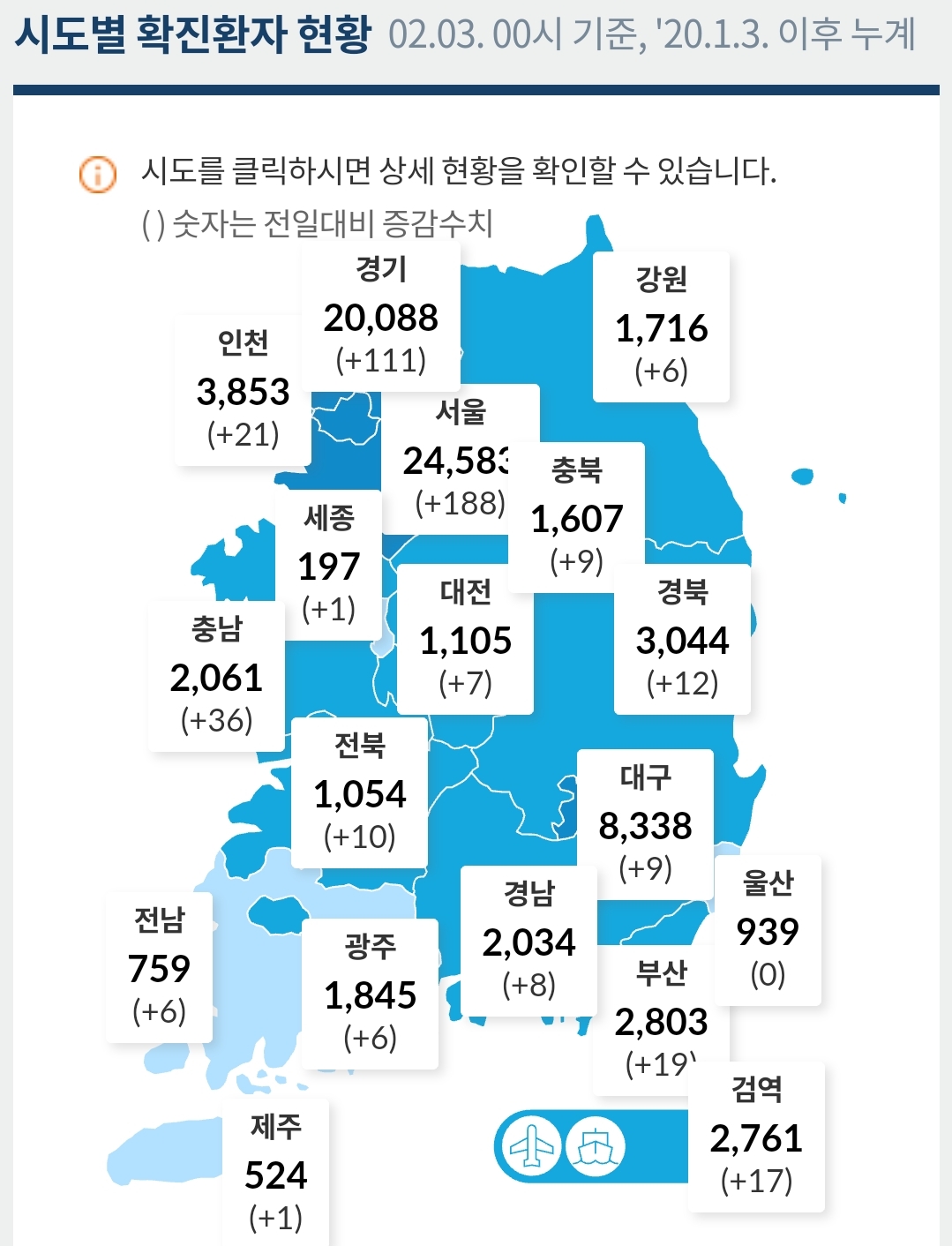 2월 2일자 기준. 출처는 2월 3일 정부 보도자료.