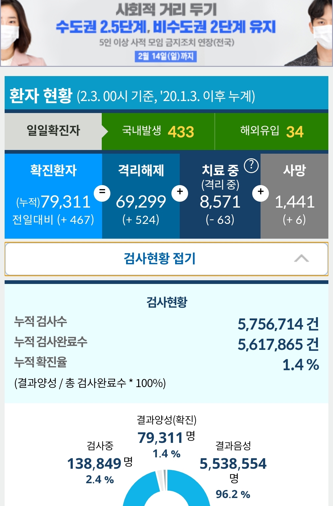 | 코로나19 집계(2021.2.4 0:00 기준) (0) | 2021.02.04 |