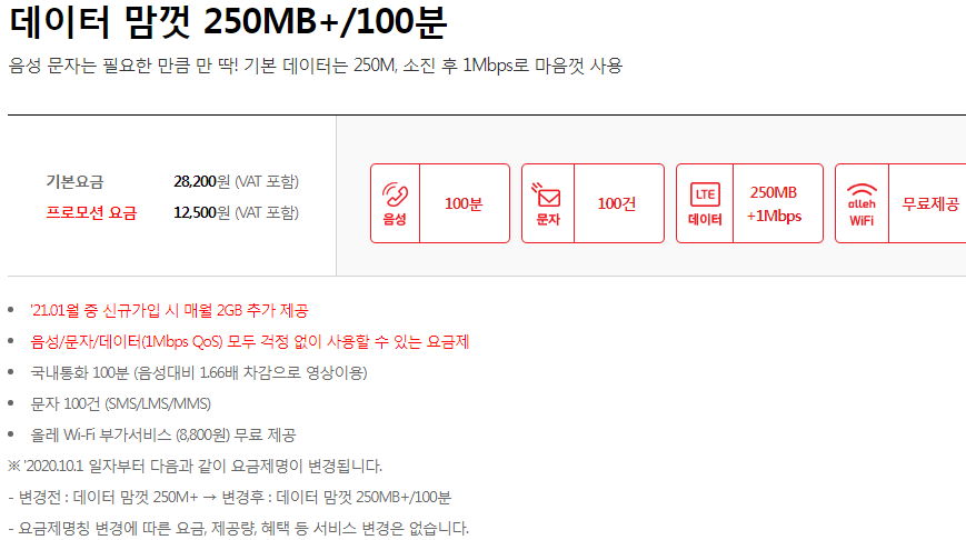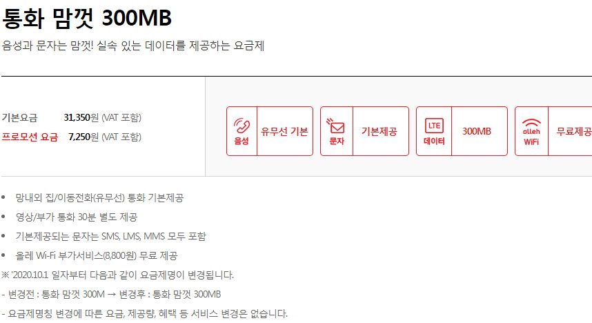 셋 중 제일 싸지만, 데이터는 300MB만 줍니다. 이건 정말 비상용이란 느낌이죠. 생활동선에 공공와이파이나 무선랜이 항상 연결되면 문제없는데, 무선랜안잡히는 산책로나, 주말 교외로 나가거나 동선 밖으로 가면 당장 힘들어집니다. 대신인지 올레와이파이가 기본 포함인데, 제 경험상 바깥으로 나가면 의미없어요.