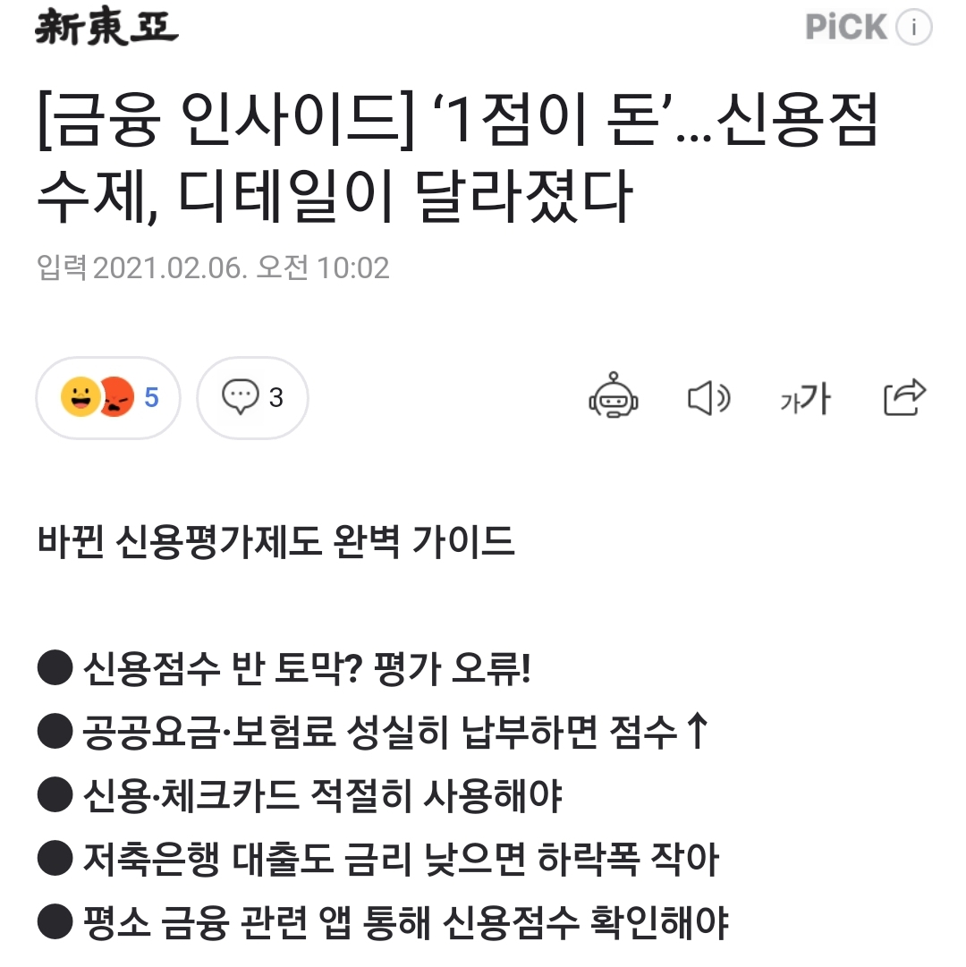 신용점수제도에 관한 설명기사 하나 본문