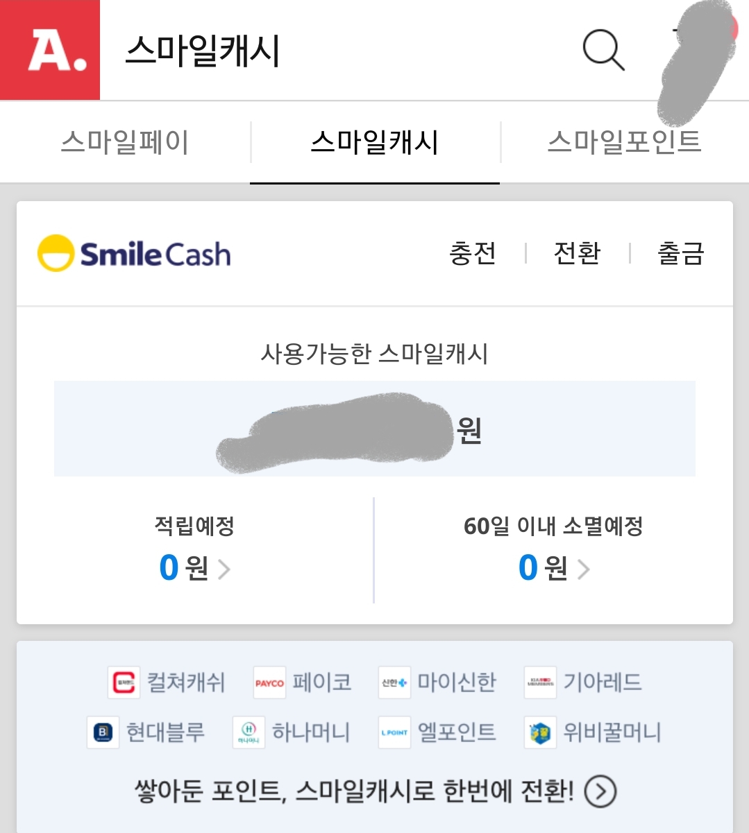 전체 전환버튼(맨 위에 큰 노란버튼)은 쓰지 마세요. 현금으로 환불이체되는 포인트(예를 들어 페이코 계좌이체 충전포인트)까지, 표시되는 건 다 바꿔버리니까요. 이전에 카드포인트를 소액까지 현금으로 1:1로 계좌이체해주는 서비스를 적은 적 있죠? 그걸 쓰세요.