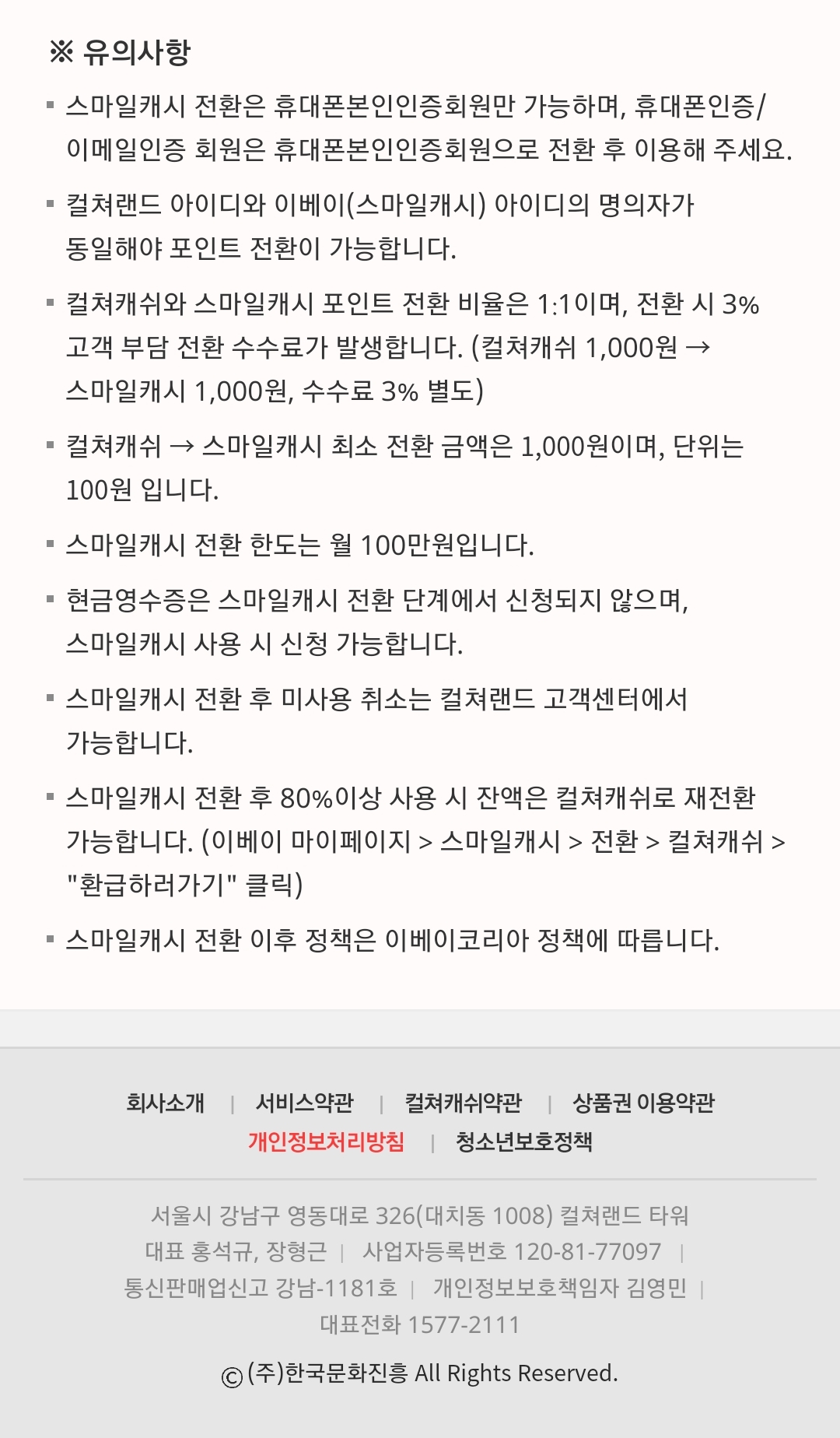 컬쳐랜드 모바일 상품권으로 이베이 스마일캐시 전환하기 본문
