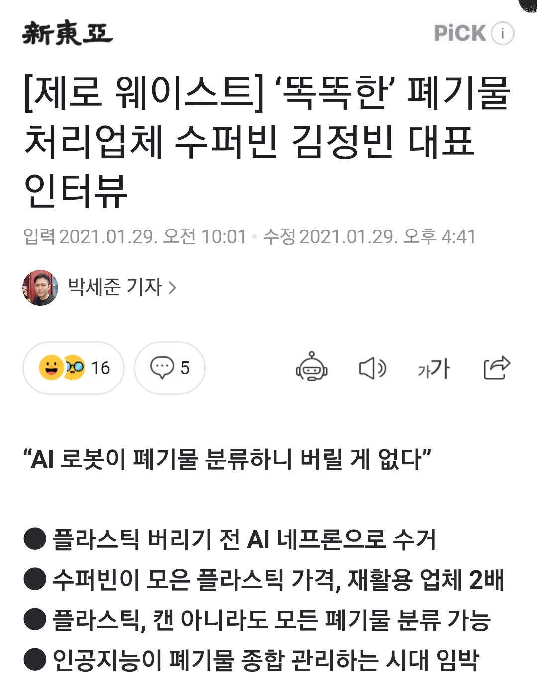 [제로 웨이스트] ‘똑똑한’ 폐기물 처리업체 수퍼빈 김정빈 대표 인터뷰