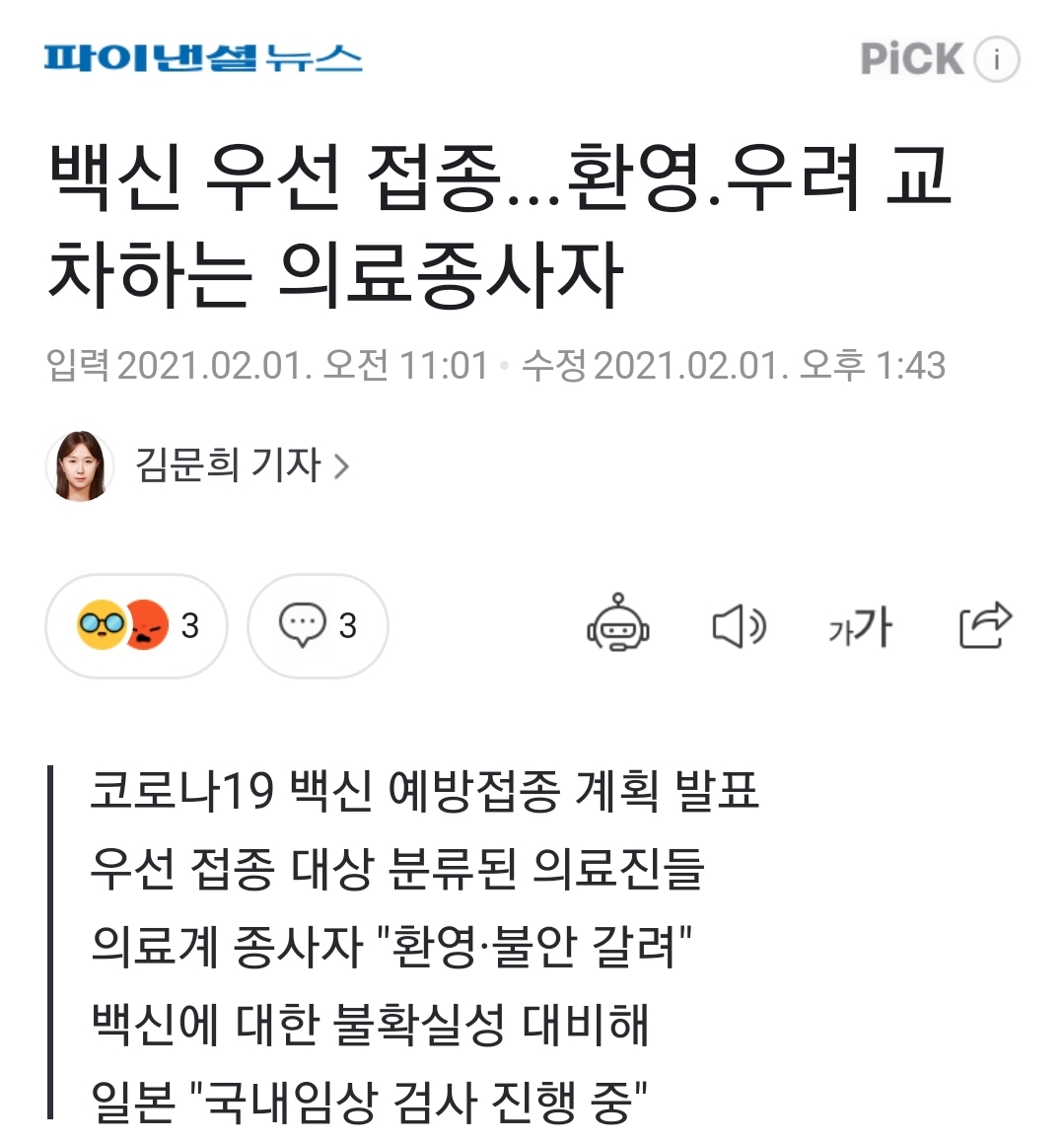 백신 우선 접종...환영.우려 교차하는 의료종사자
