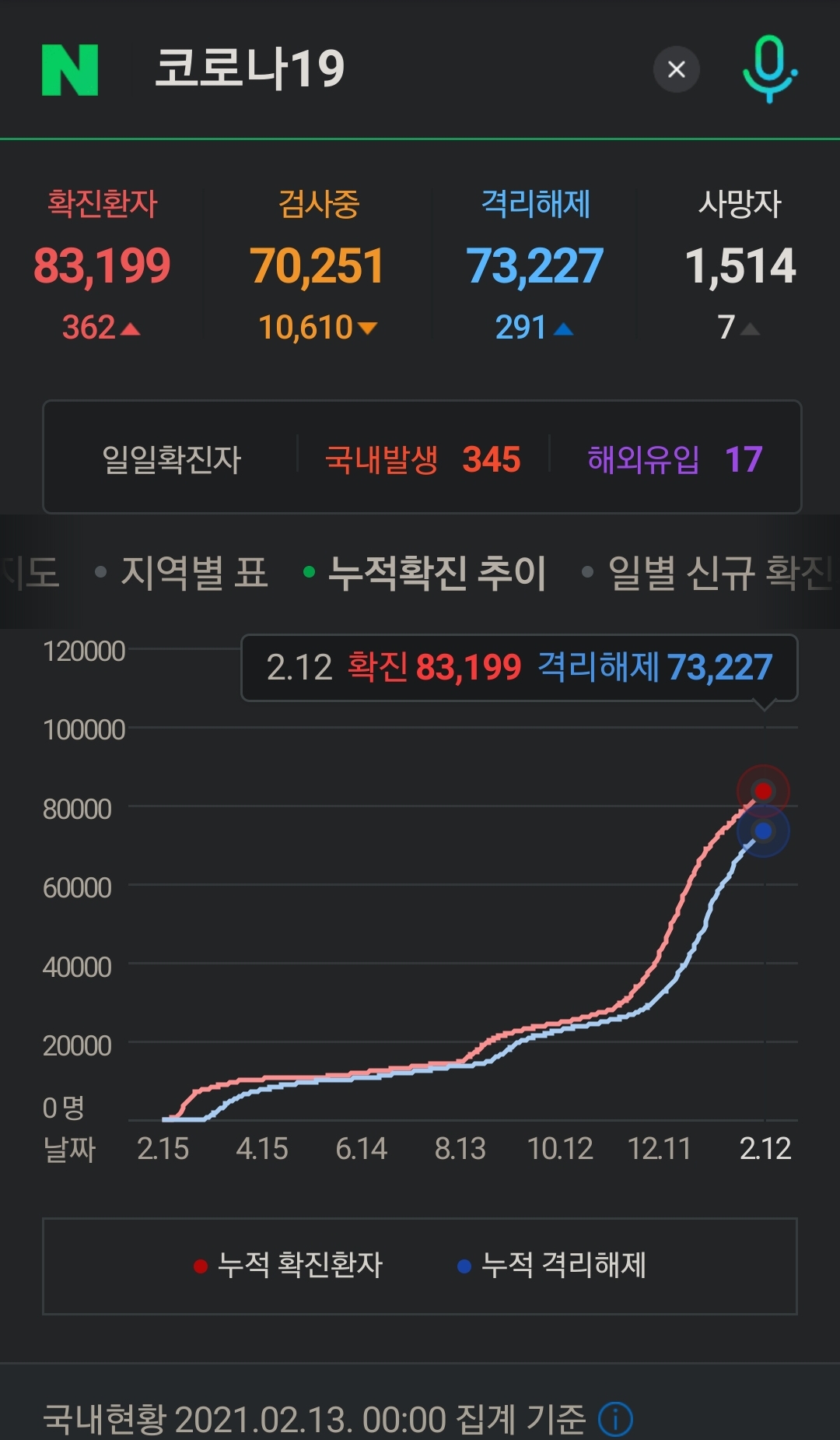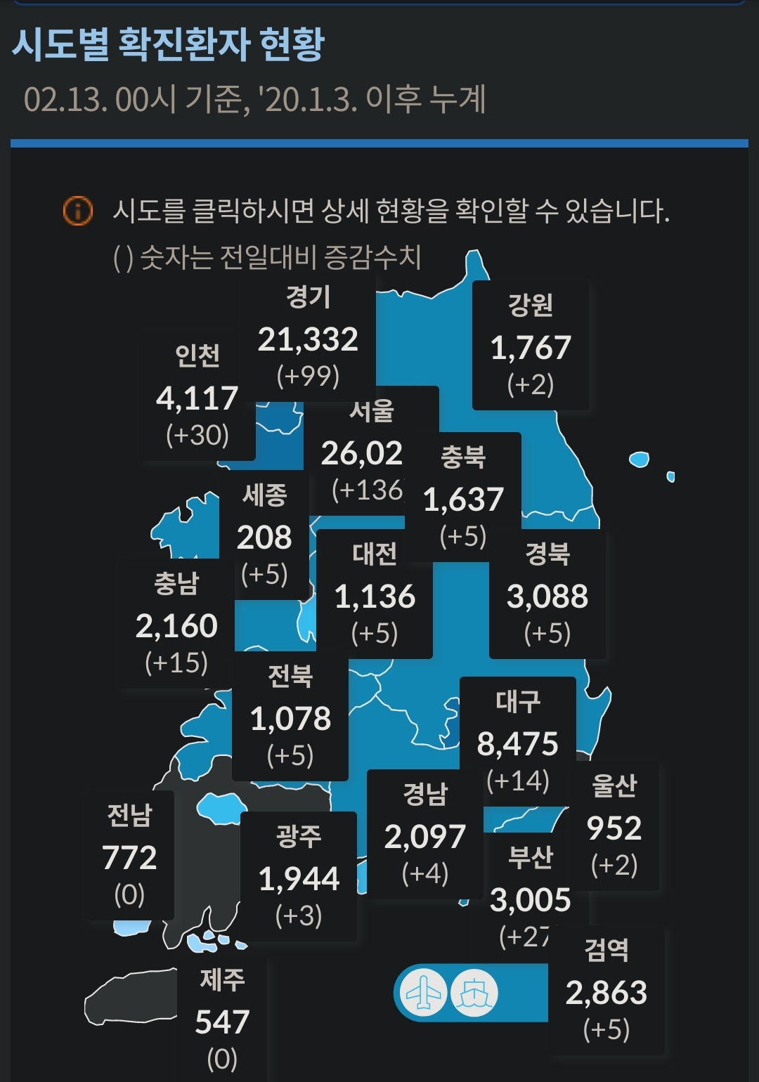 | 코로나19 집계(2021.2.12 0:00 기준) (0) | 2021.02.12 |