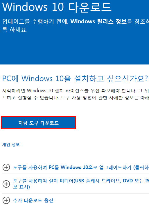 MS윈도우 10 설치 도구 다운로드와 설치 미디어 만들기 본문