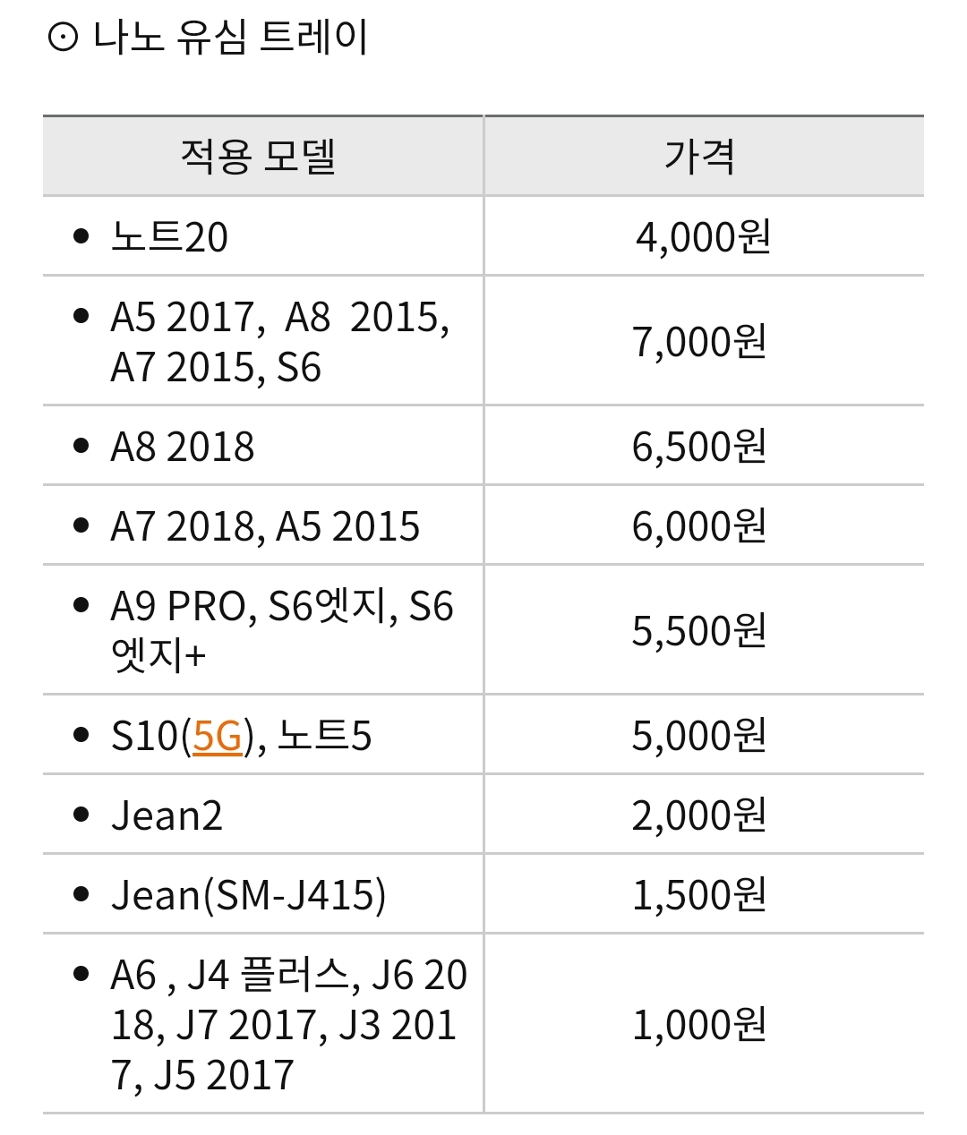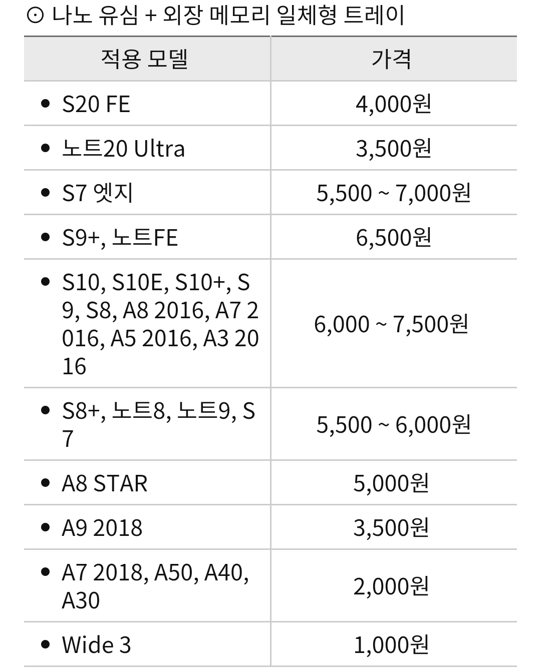 삼성전자 갤럭시 스마트폰에 들어가는 유심 트레이, 외장메모리 트레이 종류 가격 본문