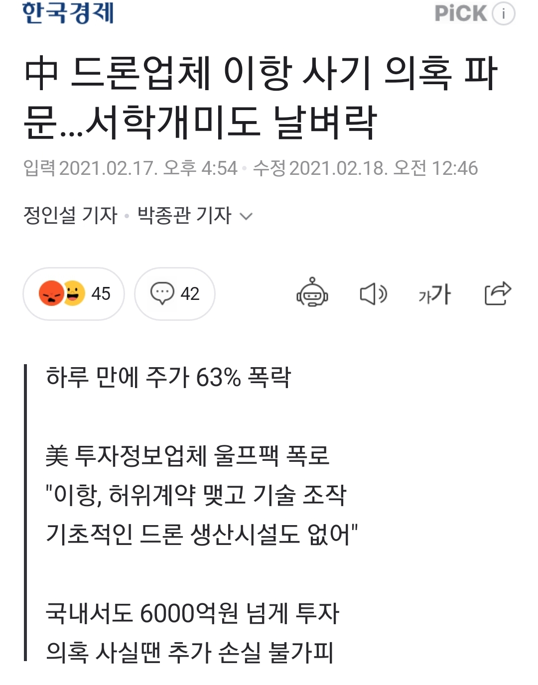 도심항공운송수단(Urban Air Mobility·UAM) 기술 기업으로 최근 국내 투자자들로부터 큰 주목을 받은 중국 기업 이항 홀딩스(Ehang)가 기술조작·가짜계약으로 주가를 뻥튀기했다는 주장이 미국에서 16