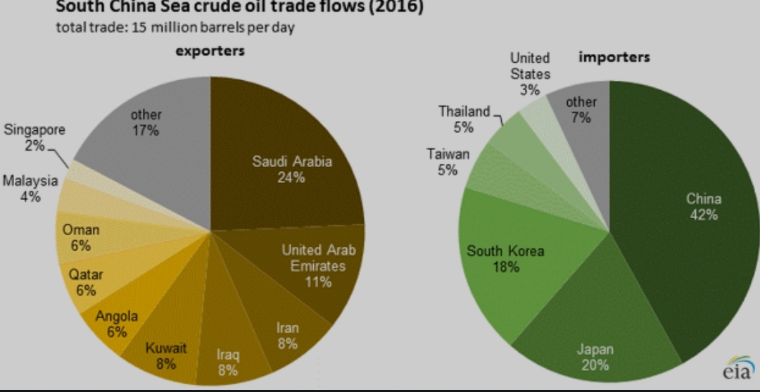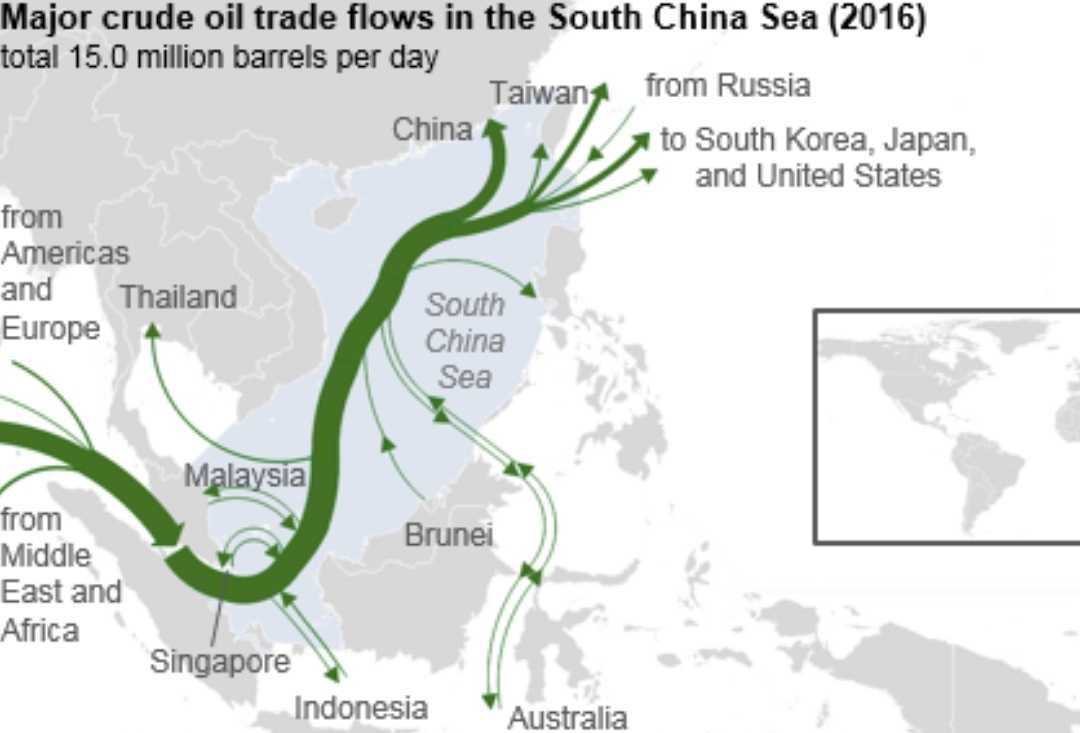 August 27, 2018 Source: U.S. Energy Information Administration, based on Clipper Crude Data Service and IHS EDINNote: Click to enlarge. Total includes small flows (less than 0.1 million barrels per day) not shown on map. The South China Sea is a major trad