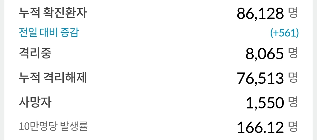 | 코로나19 집계(2021.2.17 0:00 기준) (0) | 2021.02.17 |