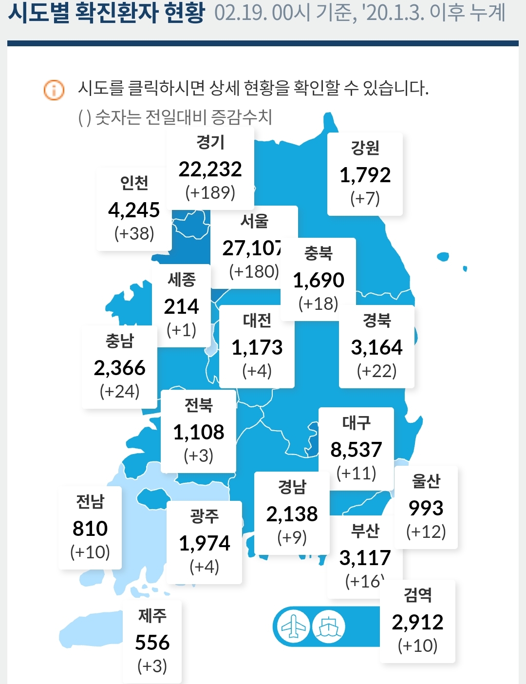 코로나19 집계(2021.2.19 0:00기준) 본문