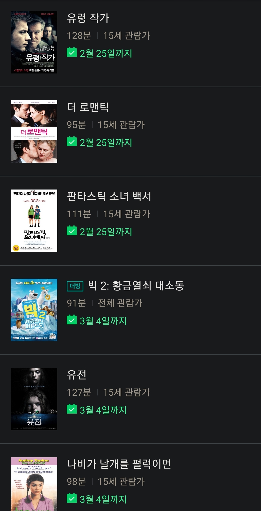 | (네이버 시리즈온 무료영화) 수영장으로 간 남자들, 나비가 날개를 펄럭이면 등 (0) | 2021.02.26 |