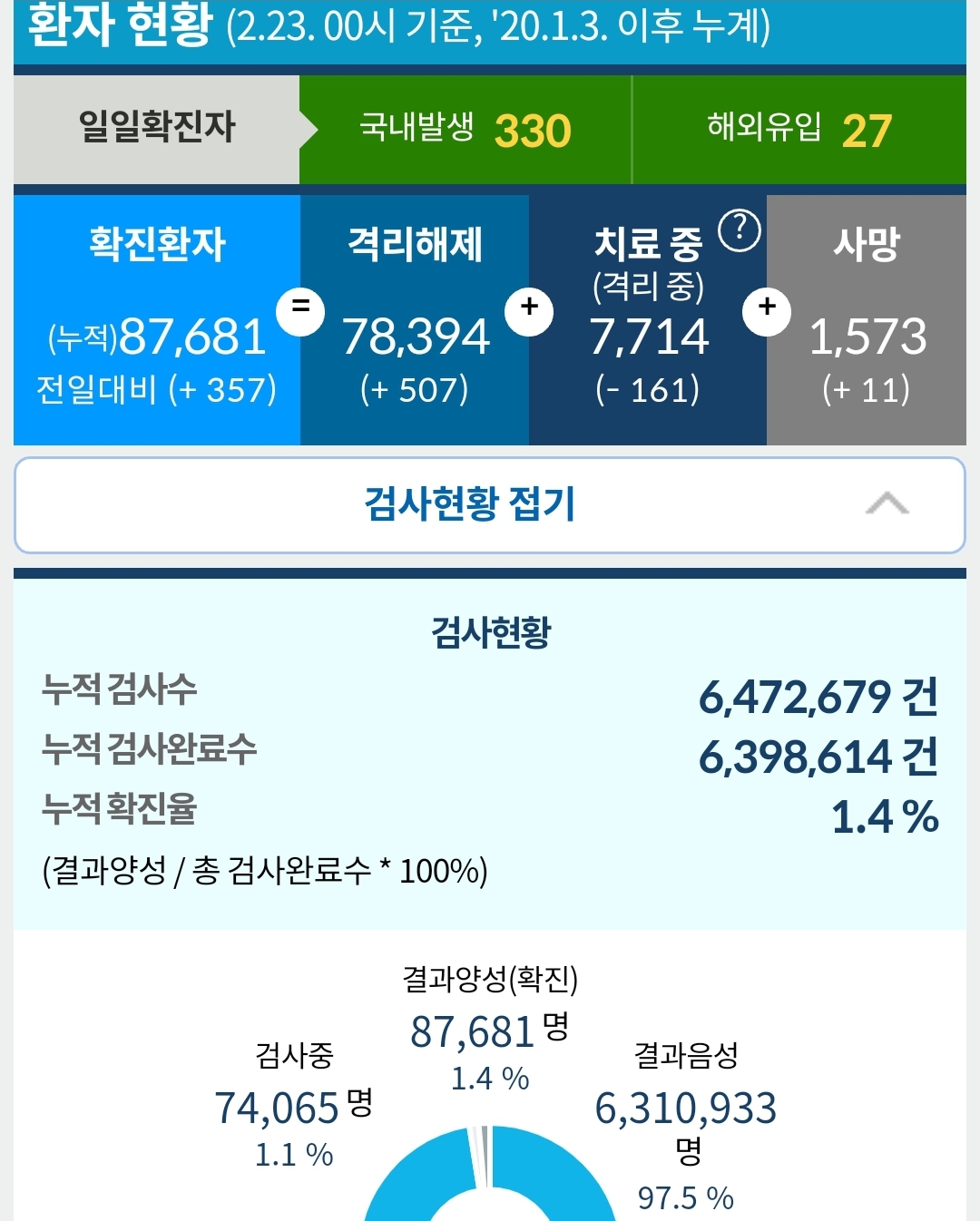 코로나19 집계(2021.2.23 0:00 기준) 본문