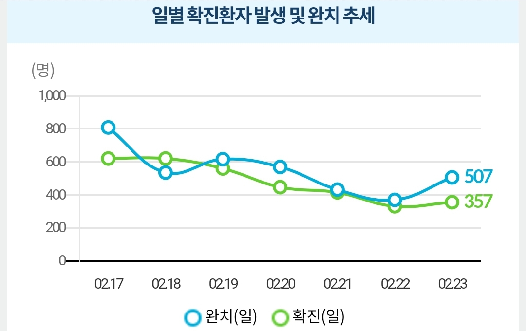 이틀째 삼백명대를 유지하고 있습니다. 다만 며칠간 줄어들던 일간 사망자는 10명보다 많네요. "형제간에도 설쇠지 말라"고 5명 이상 모이면 처벌하겠다고 강제하고 사실상 이웃감시, 신고를 장려까지 했으니.. 어쨌든, 설 연휴는 잘 넘긴 모양이군요. 치료 중인 사람이 점점 줄어들고 있습니다. 이대로 내려가서 사망자가 더 줄고 중환자도 쑥쑥 줄면 좋겠네요.