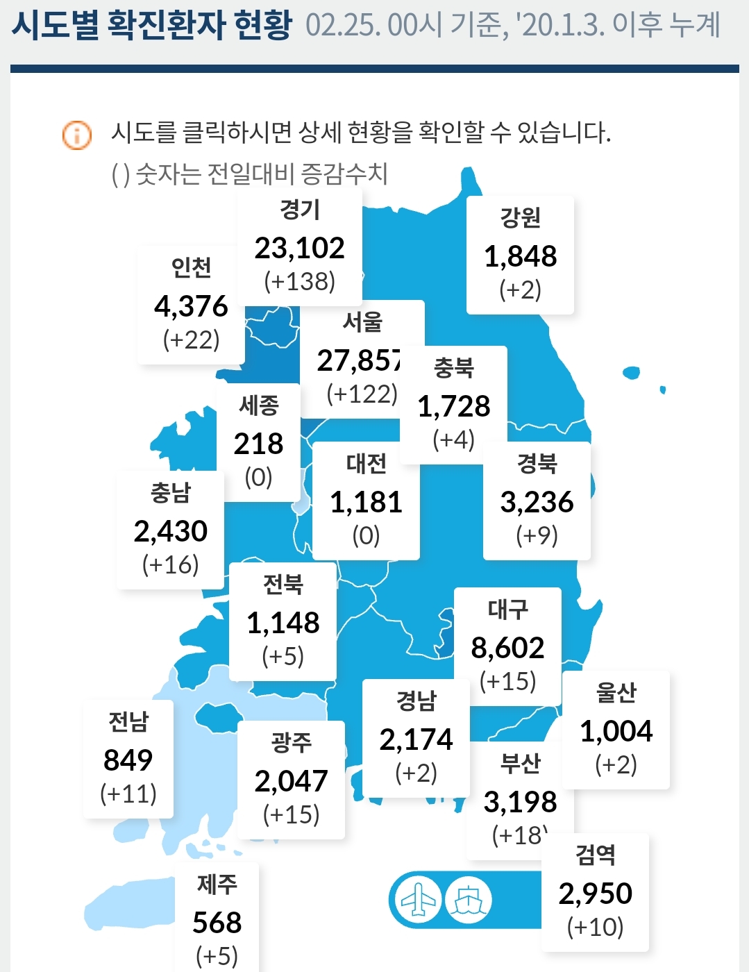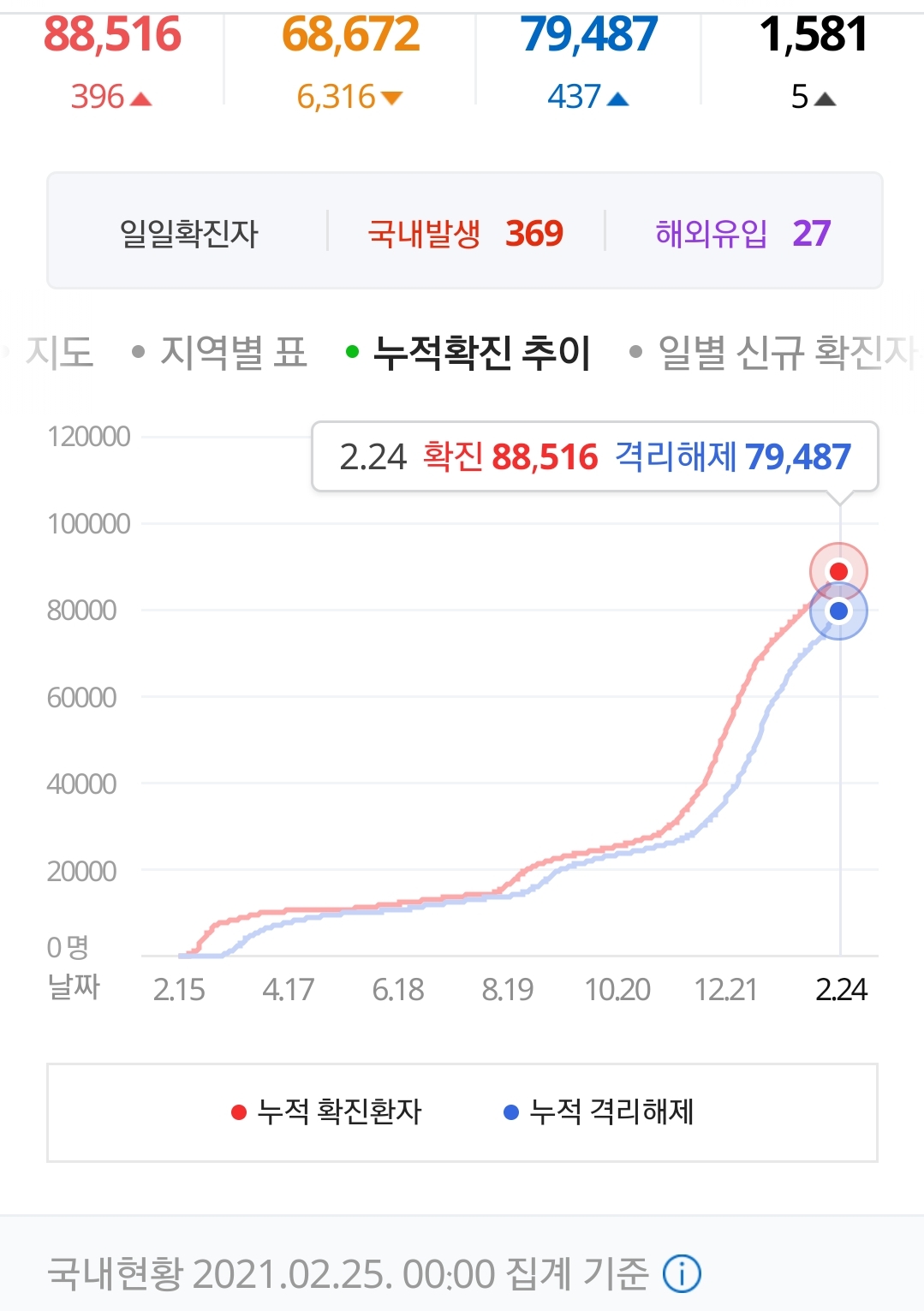 코로나19 집계(2021.2.25 0:00 기준) 본문