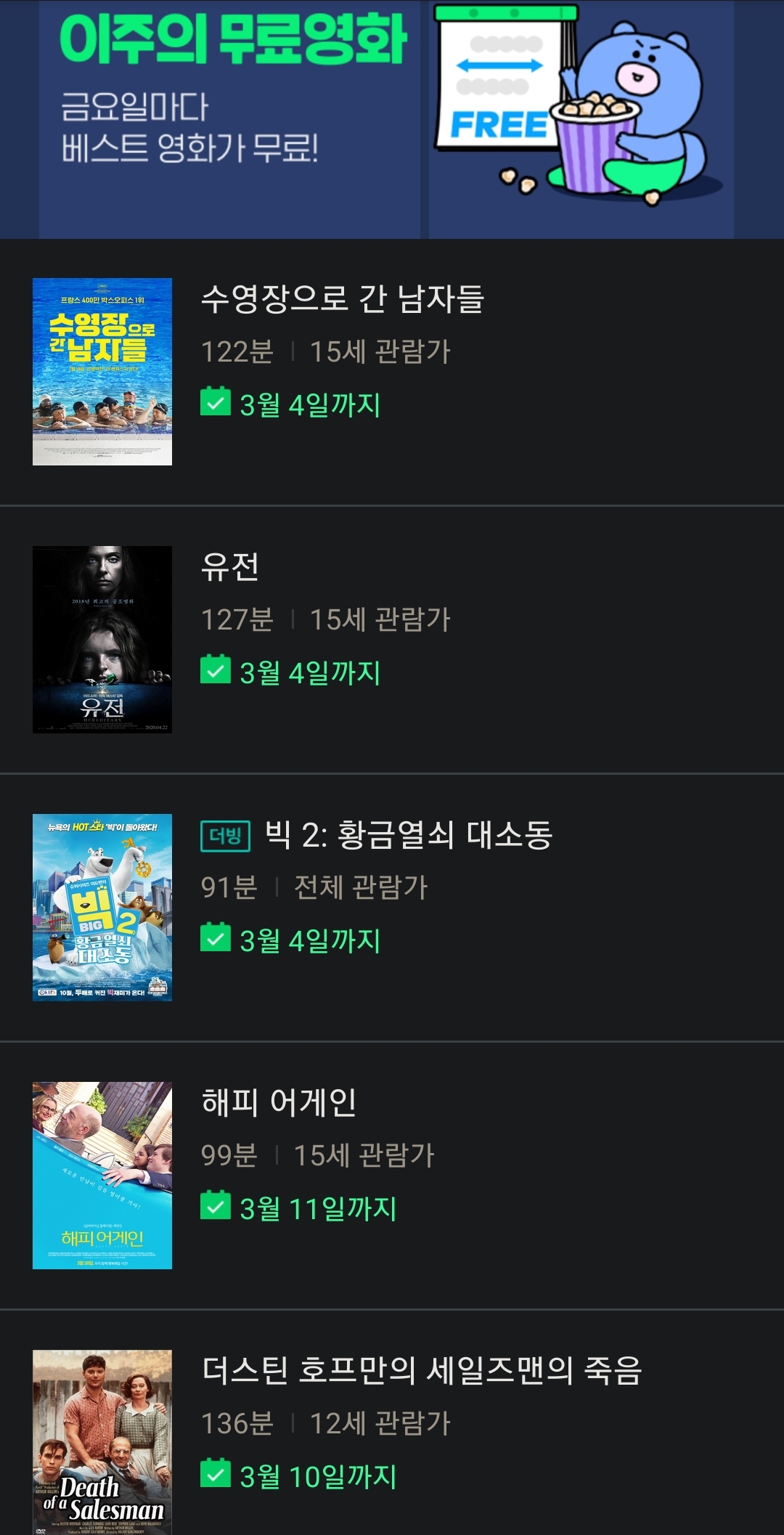 | (네이버 시리즈온 무료영화) 말모이, 사마에게, 더스틴 호프만의 세일즈맨의 죽음 등 (0) | 2021.03.02 |
