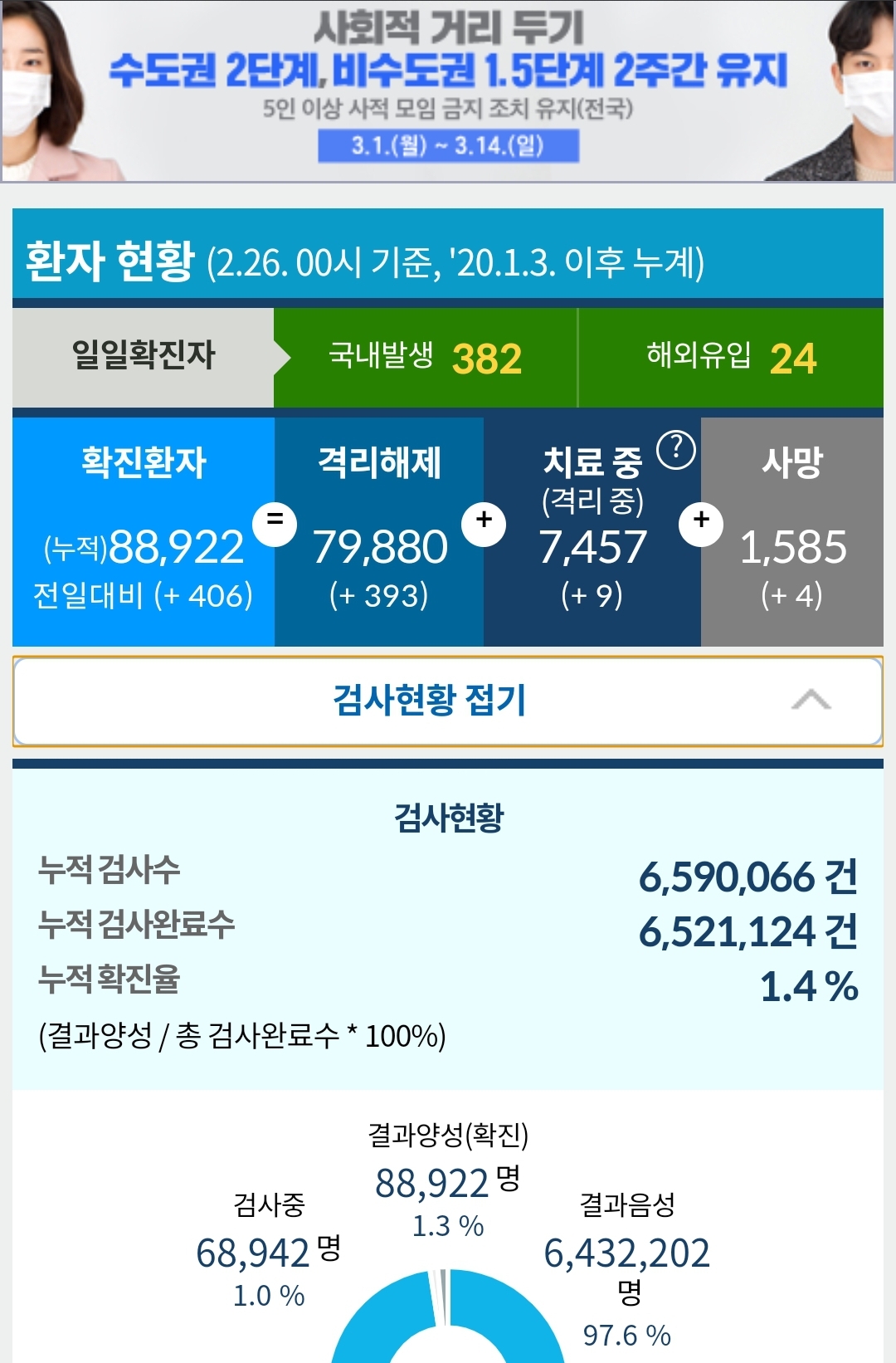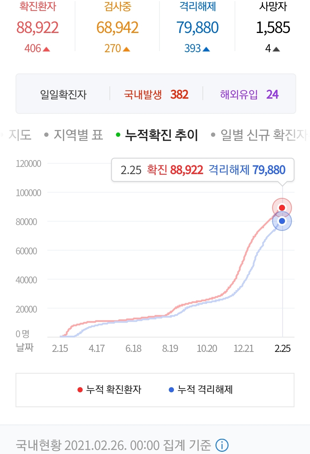 코로나19 집계(2021.2.26 0:00 기준) 본문