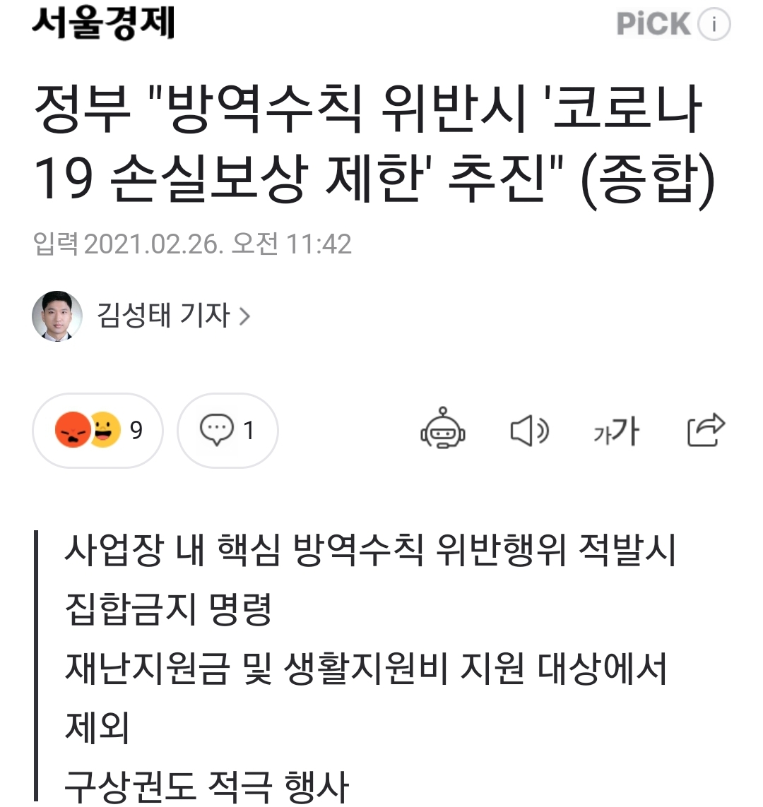 [서울경제] 정부가 현행 ‘사회적 거리두기’ 단계를 2주 더 유지하기로 결정한 가운데 방역수칙을 어겨 처벌이나 행정처분을 받은 사업주에 대한 ‘코로나19 손실보상 제한’을 추진한다. 손영