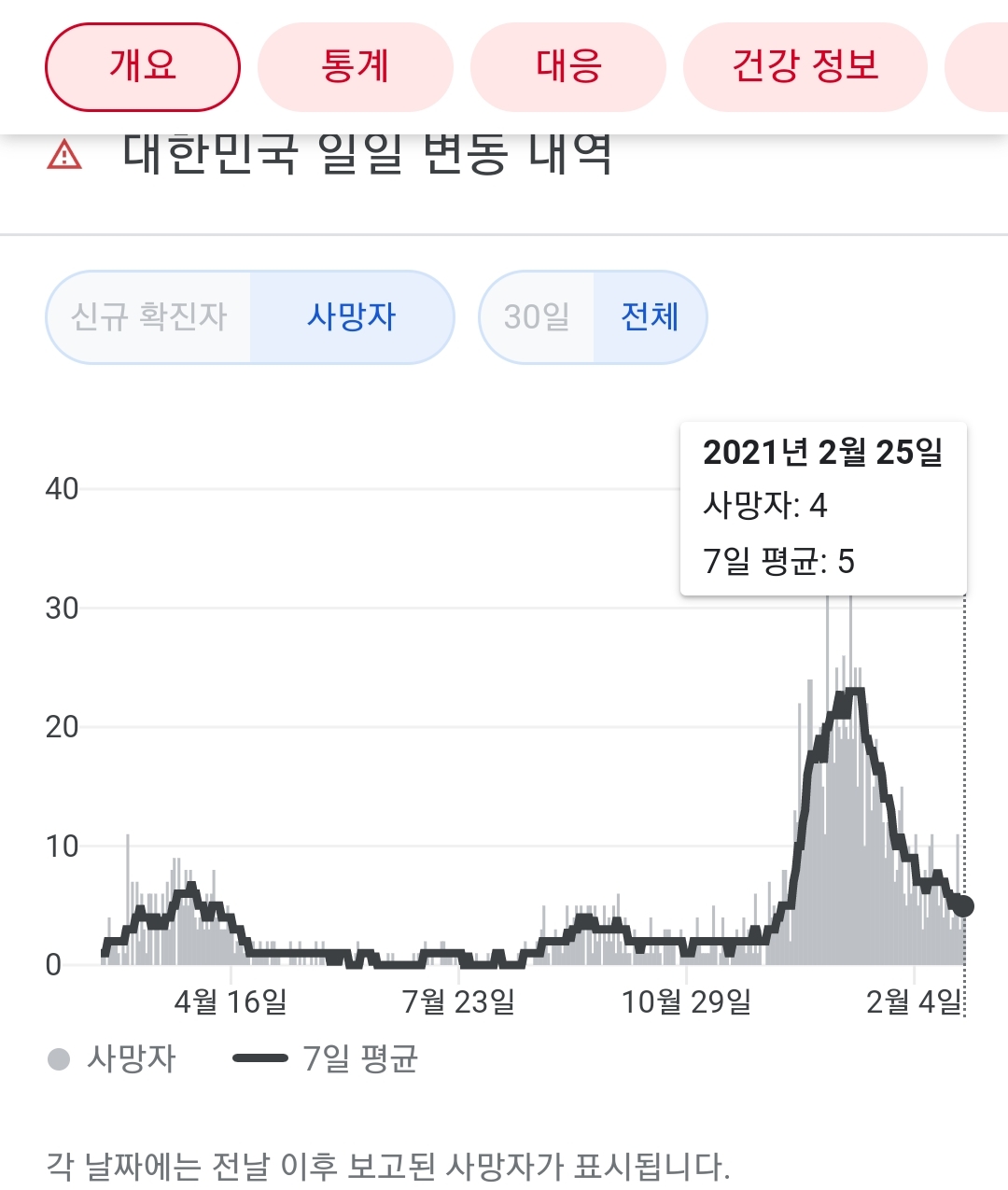 정부, 네이버 집계 25일분까지입니다. 구글은 미국날짜가 바뀌는 저녁에 반영.