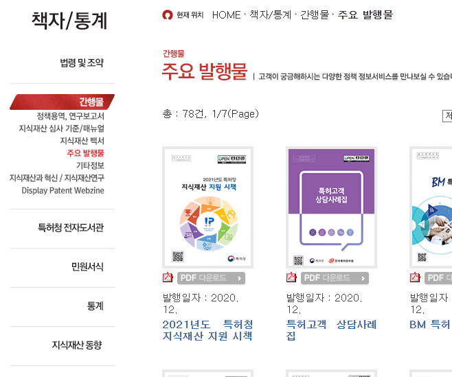 특허청발행 책자 중 무료배포하는 것들 pdf 등