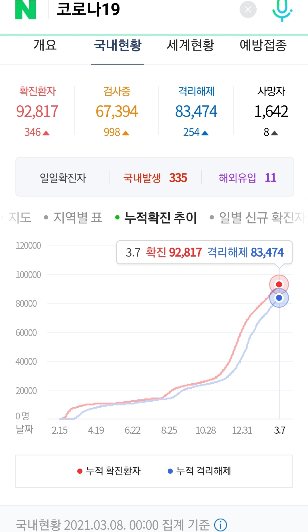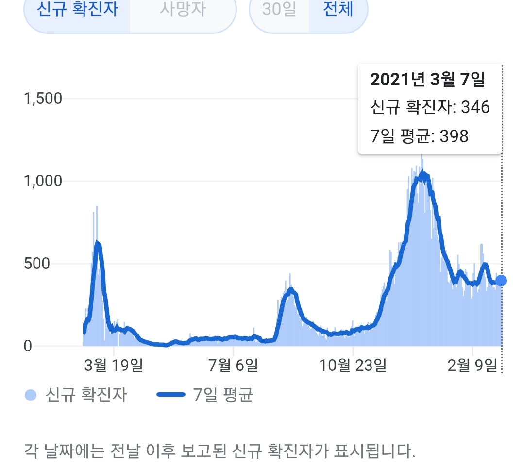 네이버, 정부 출처. 구글 그래프는 미국날짜가 바뀌는 저녁에.