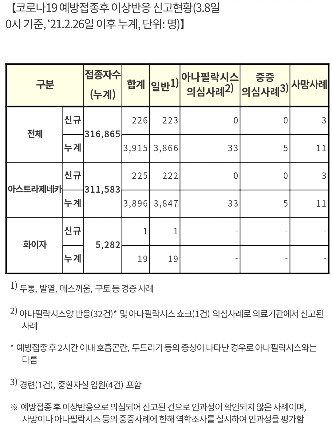 | 코로나19 집계(2021.3.11. 0:00 기준) / 백신접종 현황 (0) | 2021.03.11 |