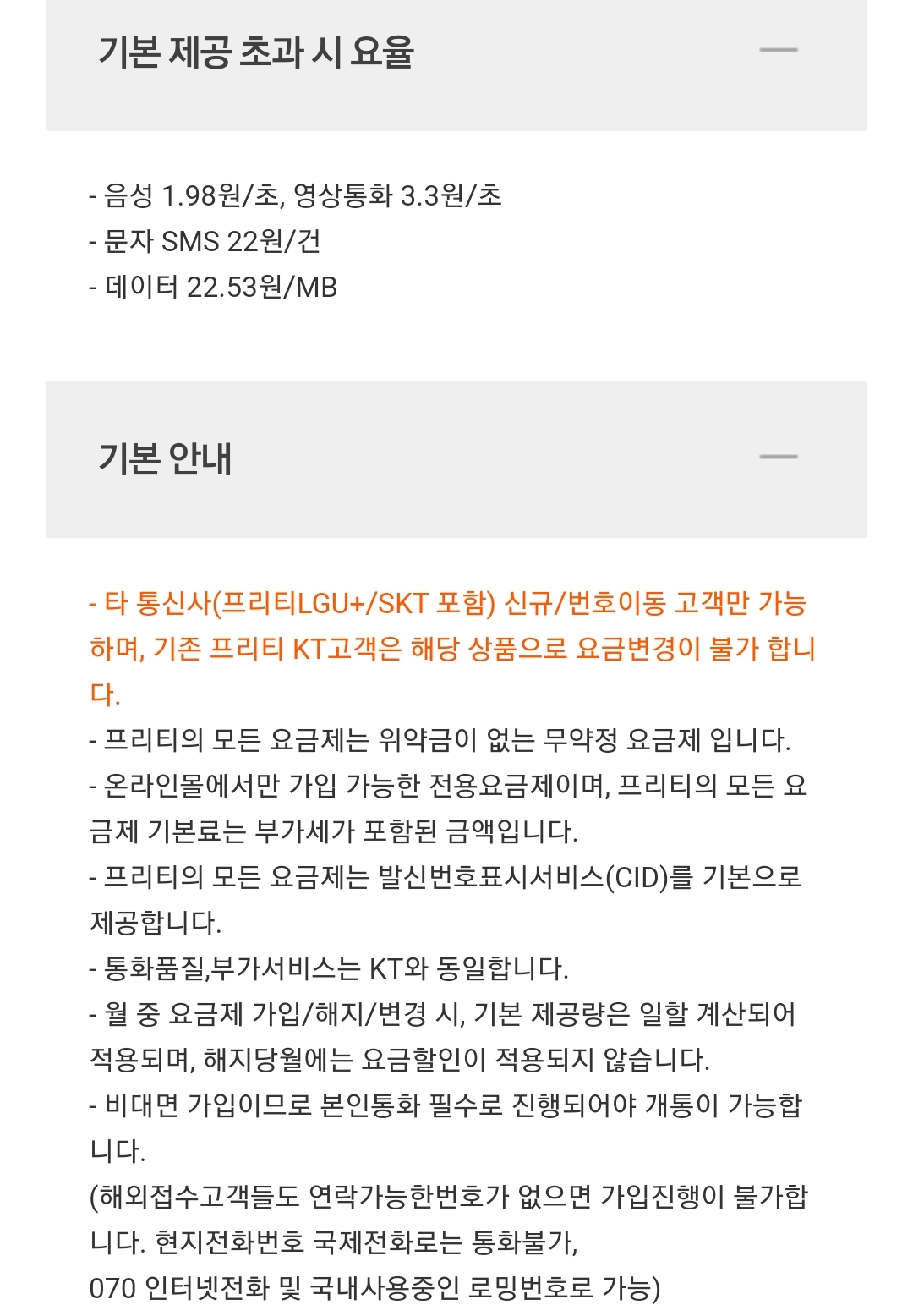프리텔레콤은 항상 가입신청일 기준으로 적용해 유심을 택배로 보내주면 받아 개통하는 방식이라고 알고 있고, kt엠모바일은 이 통신사용 공유심이 있으면 사용가능할 겁니다.