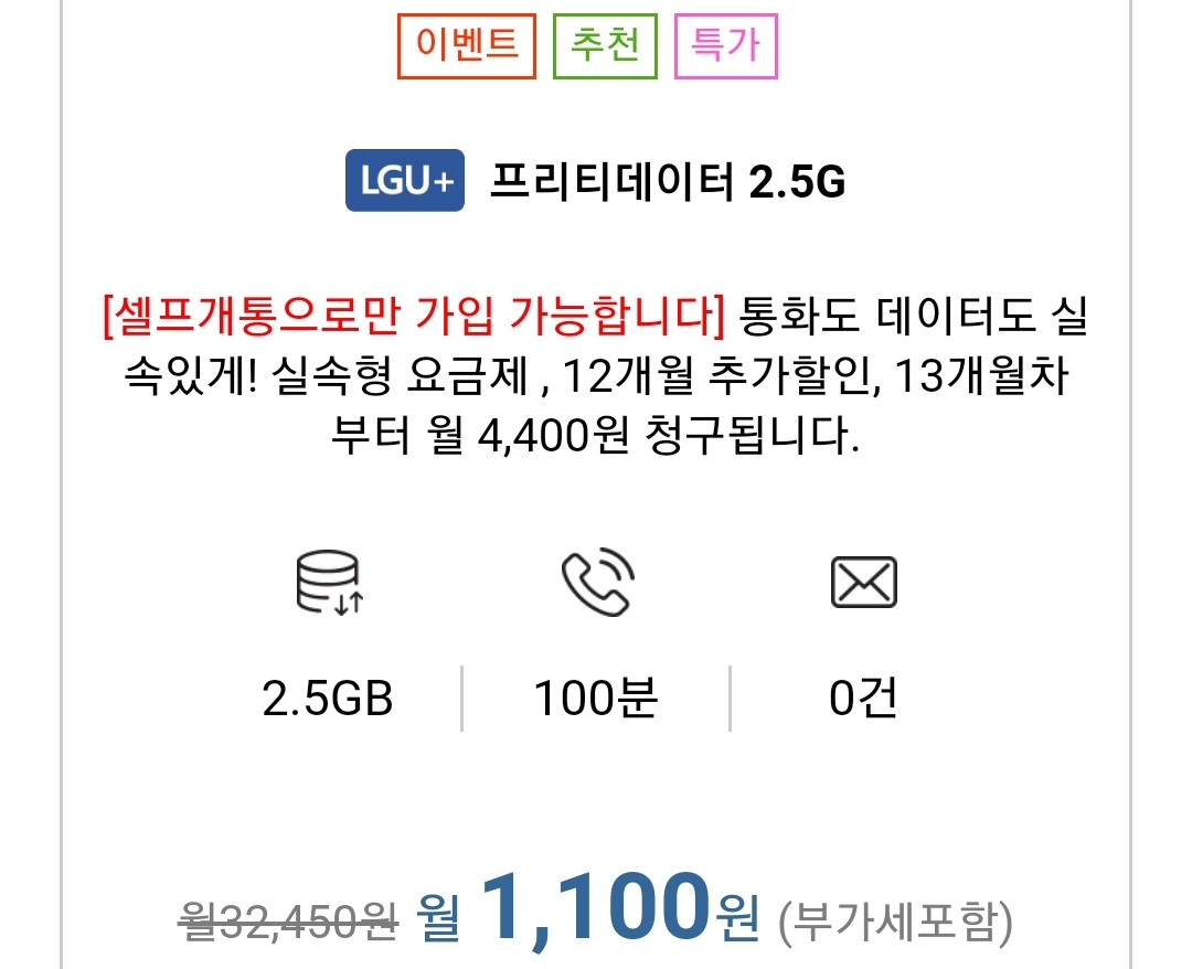 금방 끝날 줄 알았는데 아직 계속 하고 있네요 . 이건 위의 두 요금제와 달리 12개월 기간한정할인 후, 인상된 요금을 자동적용합니다.