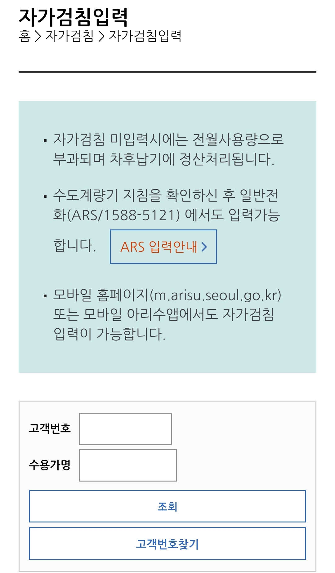 | 서울상수도사업본부(아리수) 수도요금 자가검침 입력 (1) | 2021.04.09 |