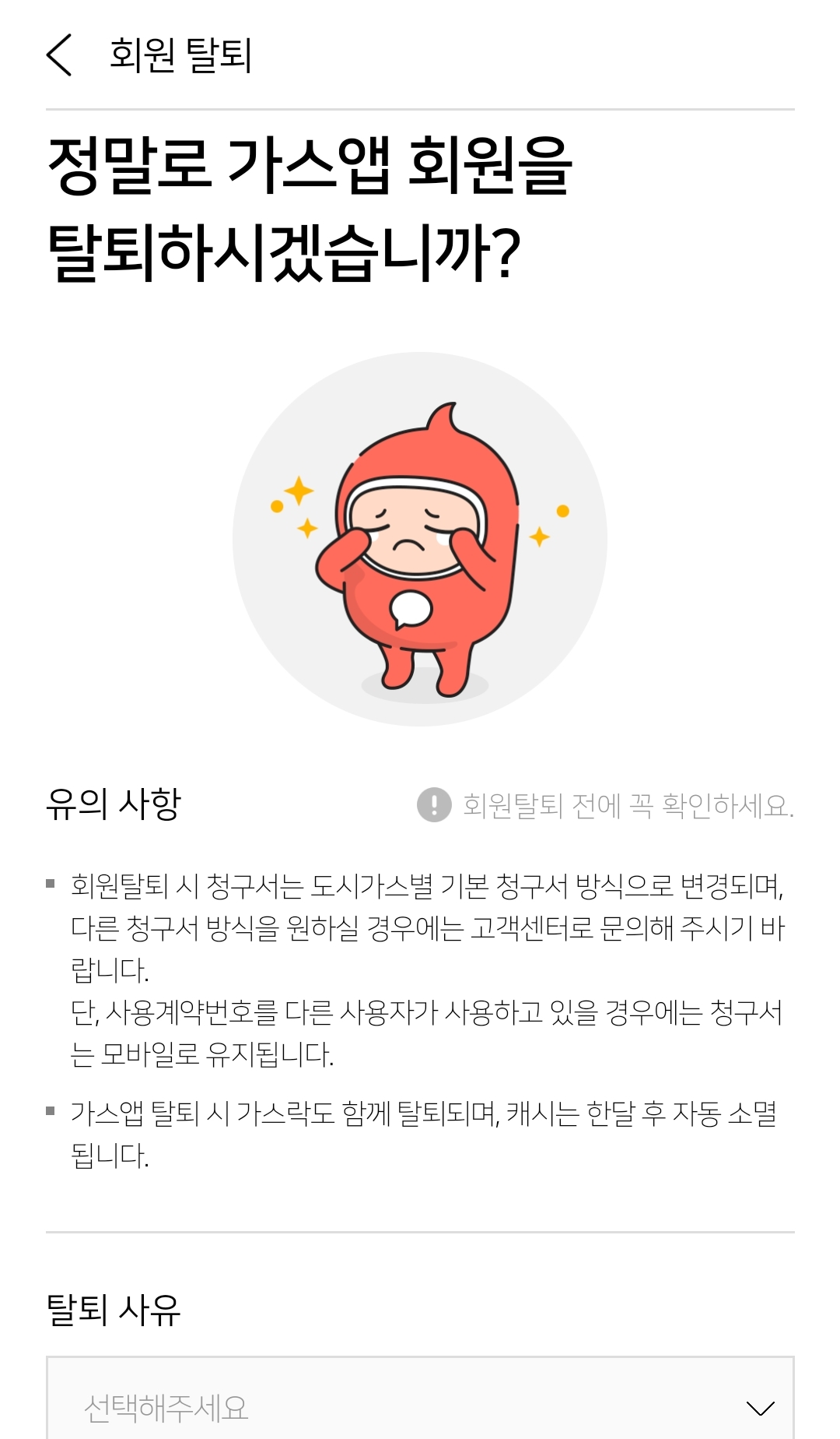 앱을 지우고 탈퇴하면, 청구서 배달 방식이 바뀐다고 나옵니다. 이 부분은 조심하기. 가스앱을 사용하기 전에 사용하던 방식을 기억했다 돌아가는 게 아니라는 것 같은데.. 나중에 PC웹으로 접속해 확인해보니 원래 하던대로(이메일)더군요.