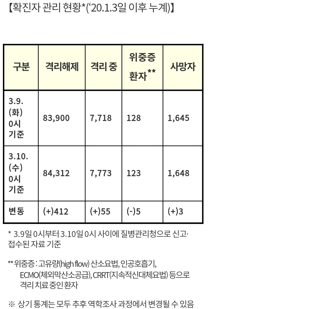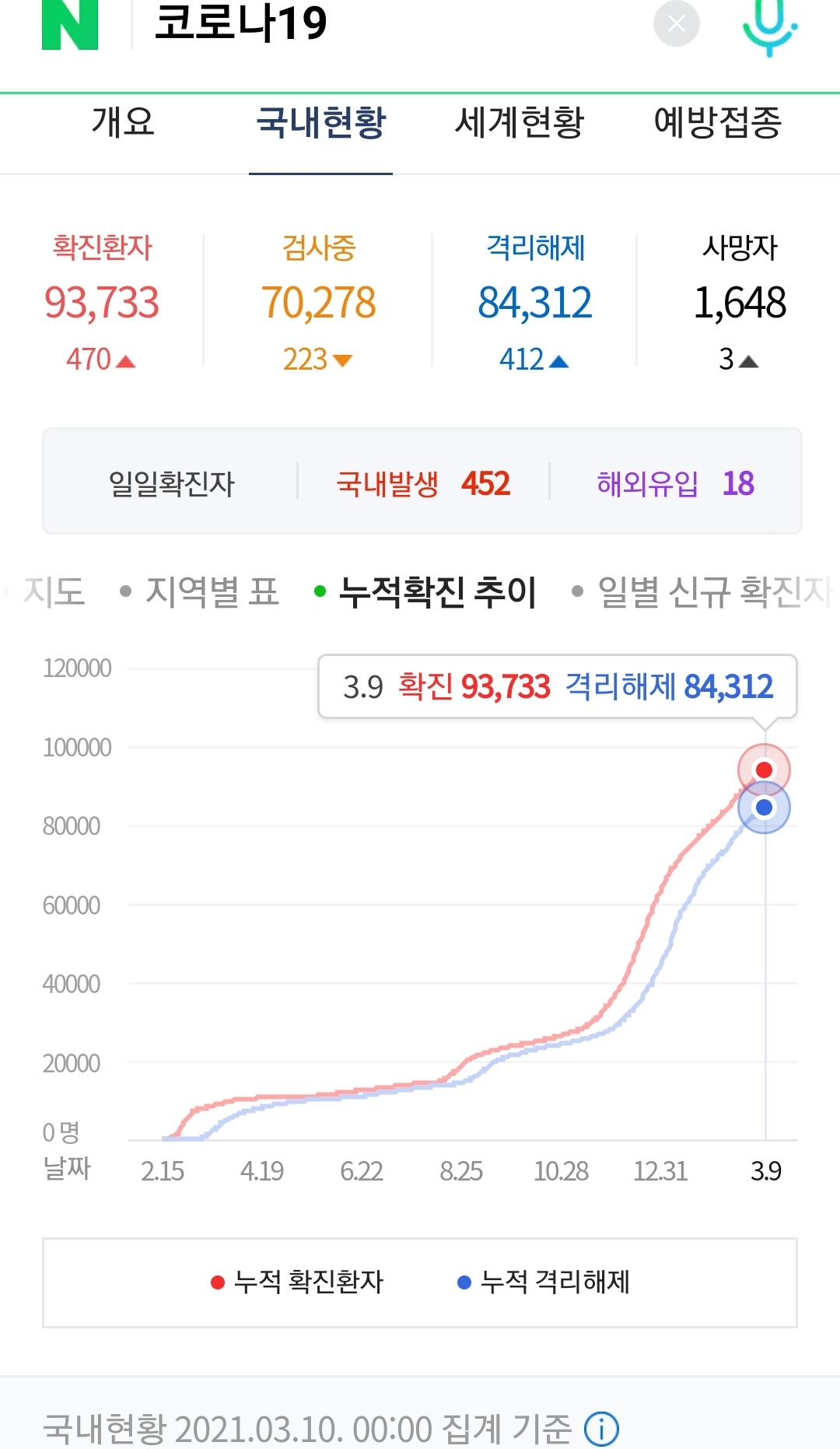 | 코로나19 집계(2021.3.8 0:00 기준) (0) | 2021.03.08 |