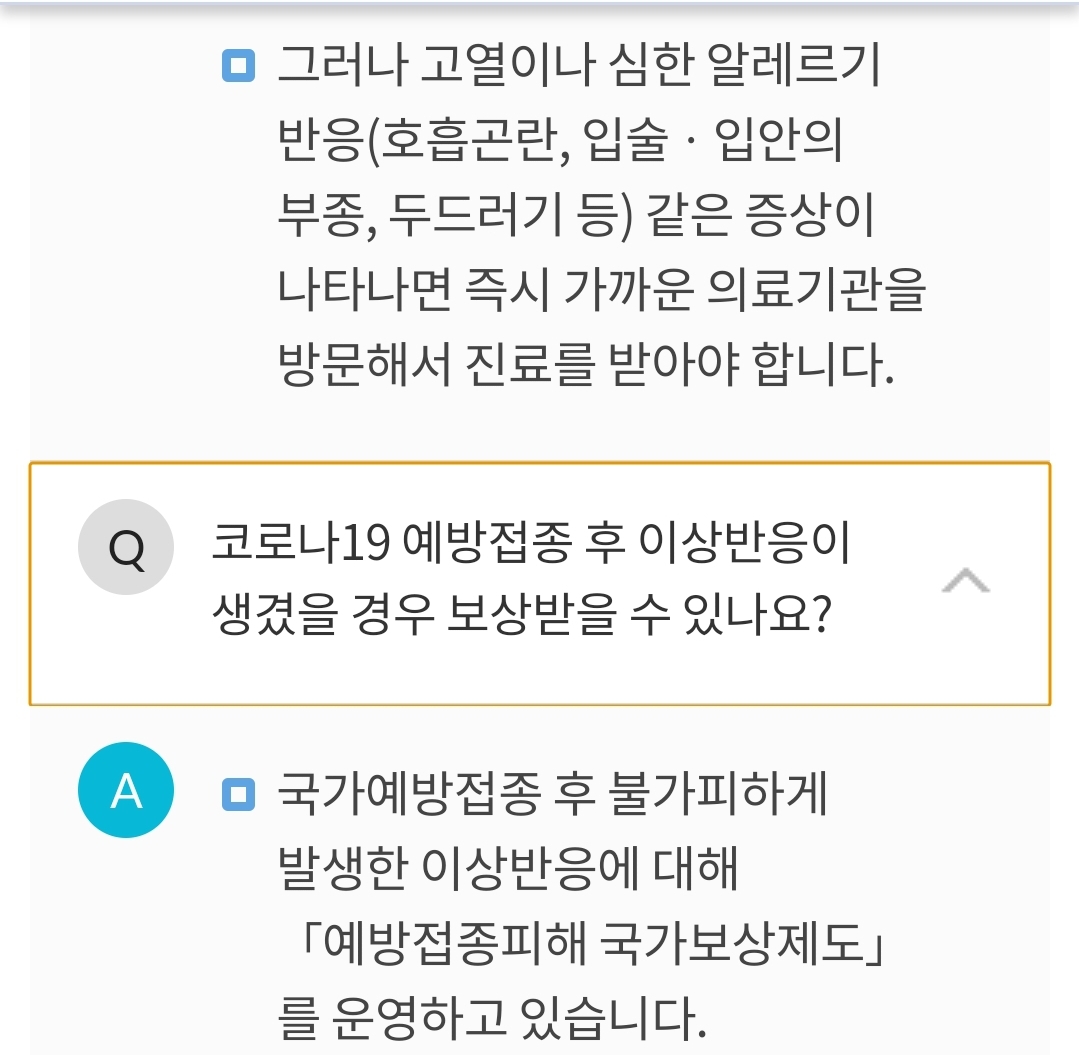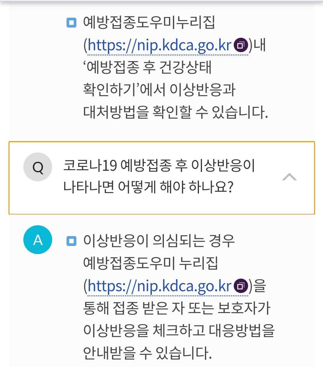 코로나19 백신접종 후 이상반응에 관한 문답 본문
