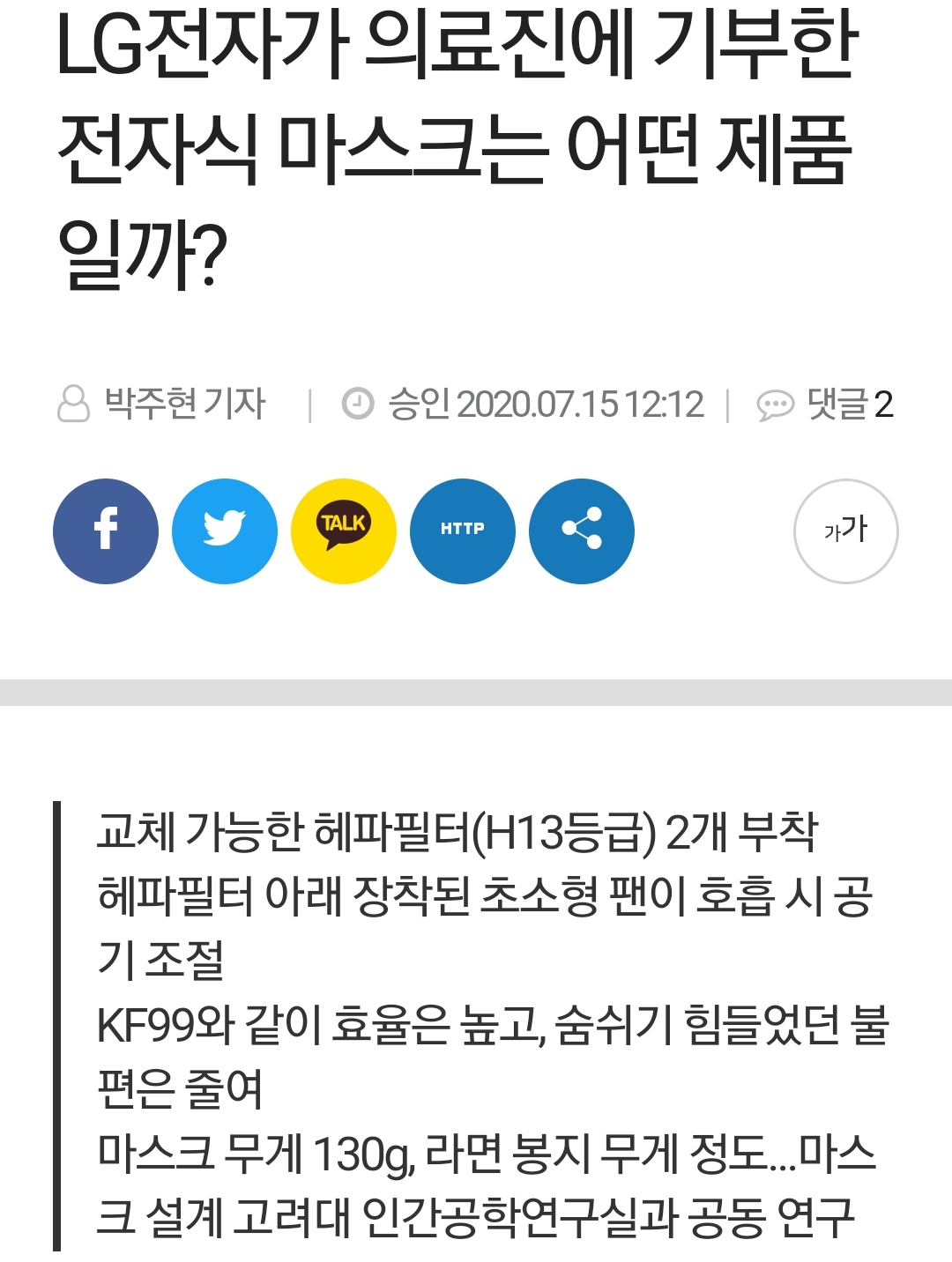 LG전자가 의료진에 기부한 전자식 마스크는 어떤 제품일까? - 케미컬뉴스