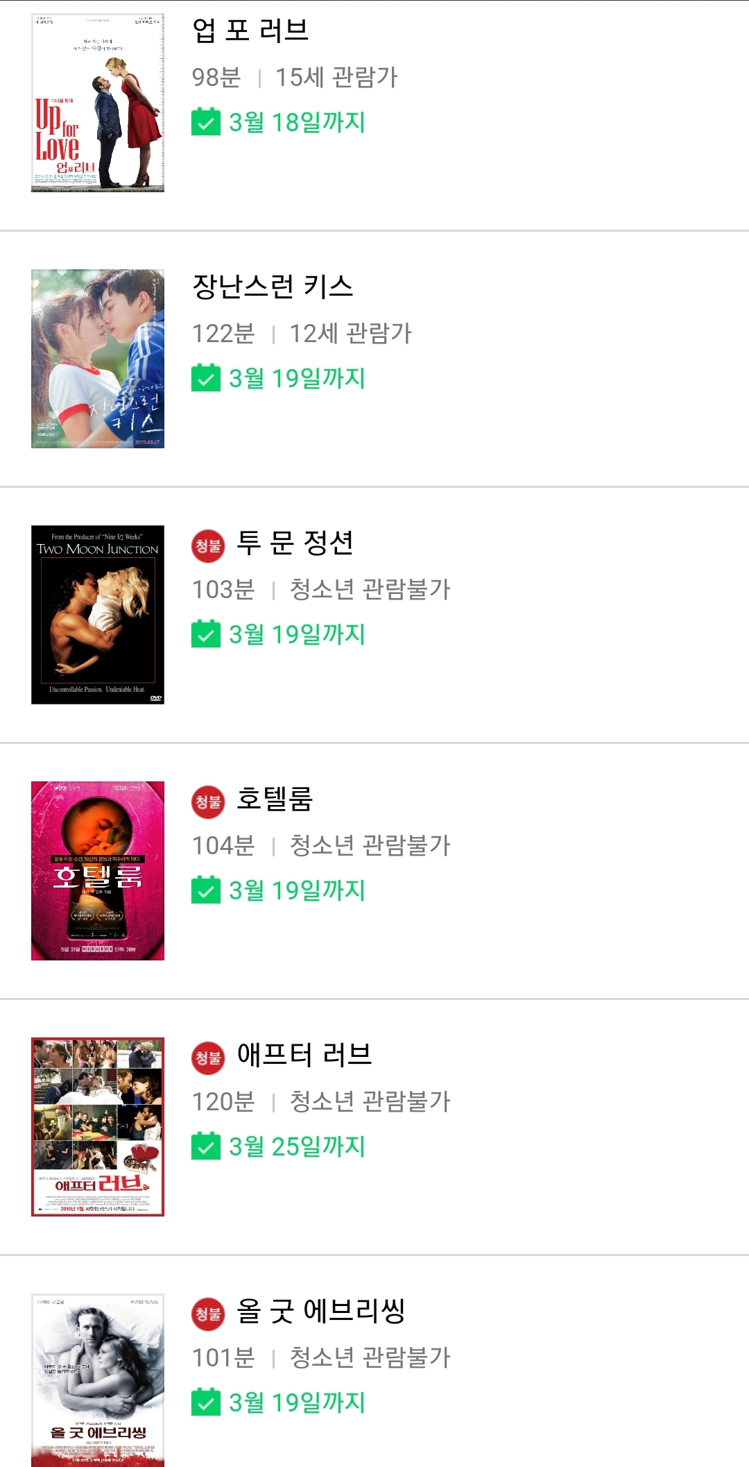 이번주는 드라마, 멜로영화로 꽉 찬 것 같네요. 어른용 표시가 붙은 작품도 늘었습니다.