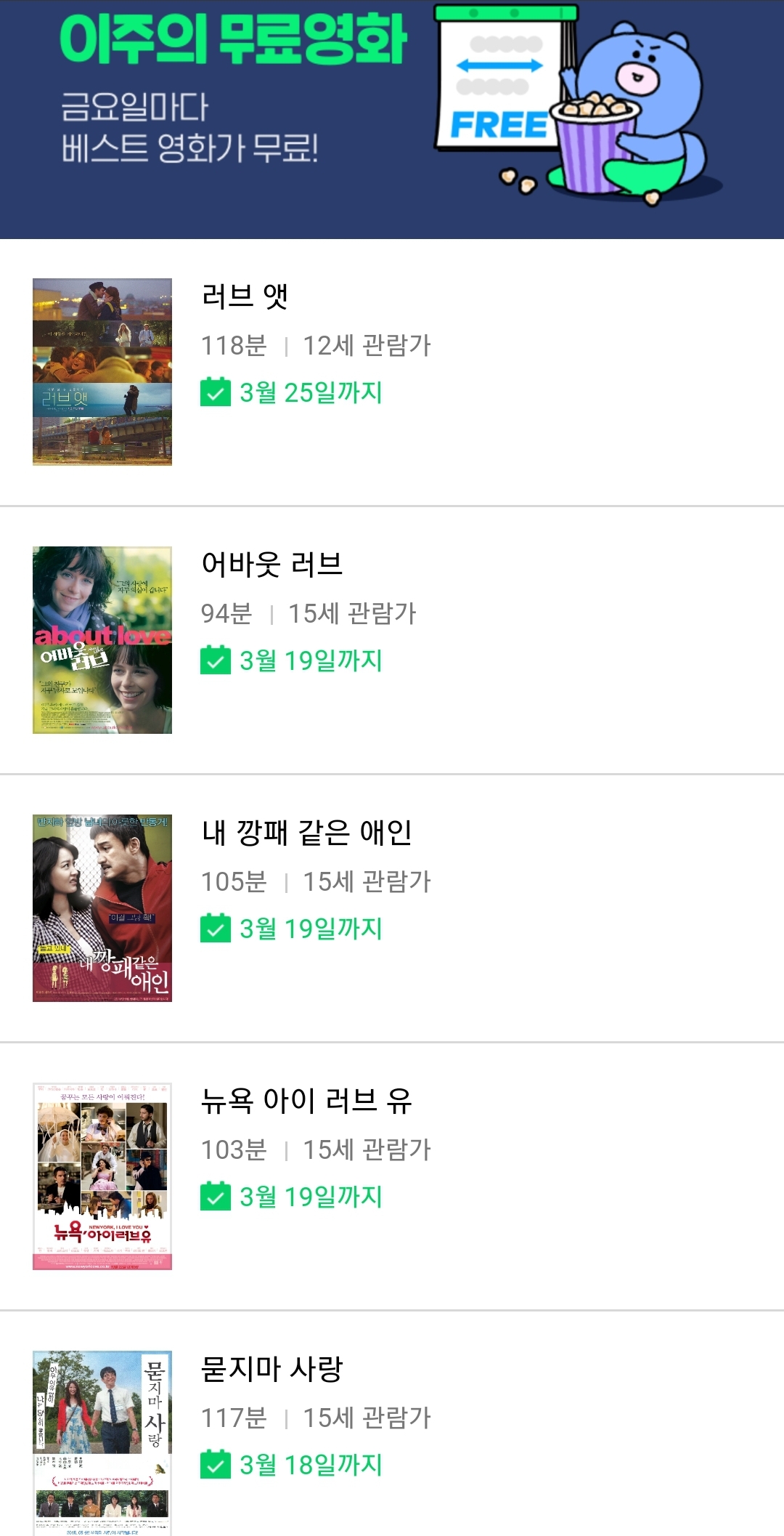 | (네이버 시리즈온 무료영화) 어바웃 러브, 묻지마 사랑 등 (0) | 2021.03.05 |