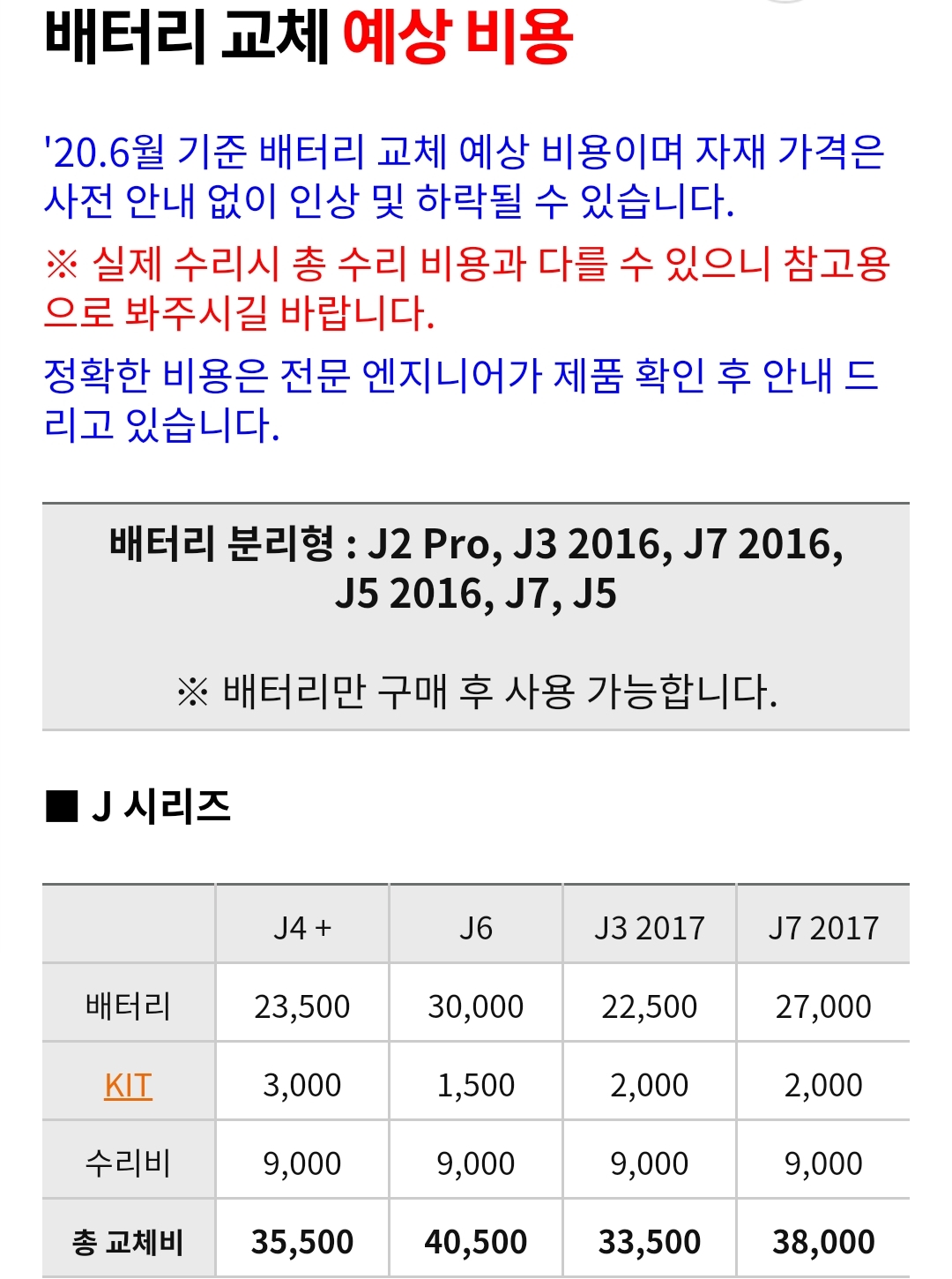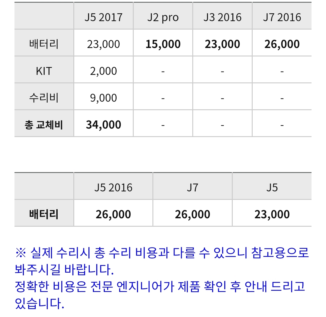 삼성전자 스마트폰, 갤럭시 J시리즈 배터리 교체비용 본문